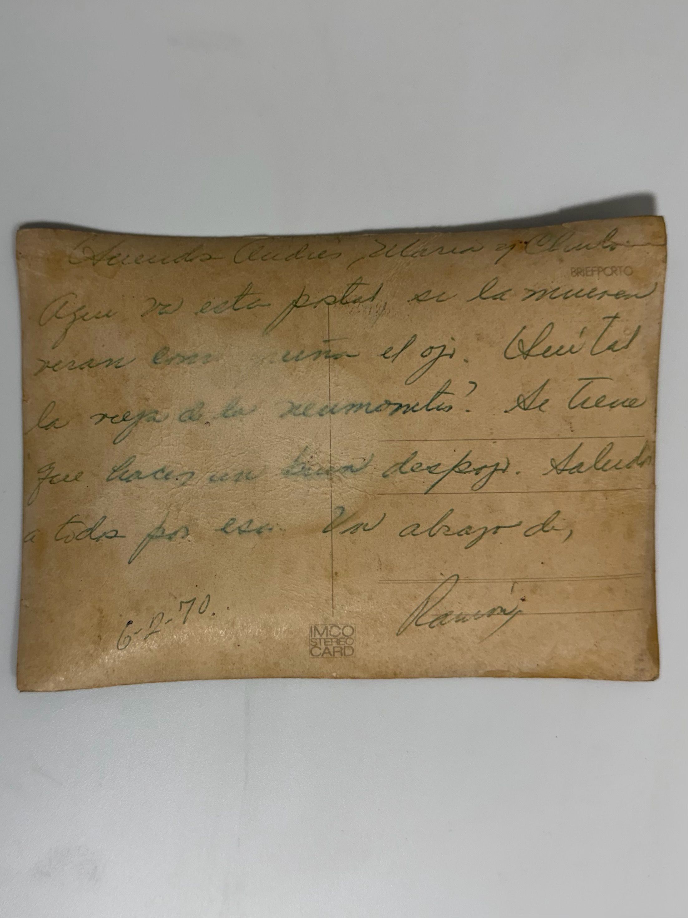 Lenticular postcard with portrait image. Verso with handwritten message dated 1970. Produced by IMCO, Japan.Acquisition