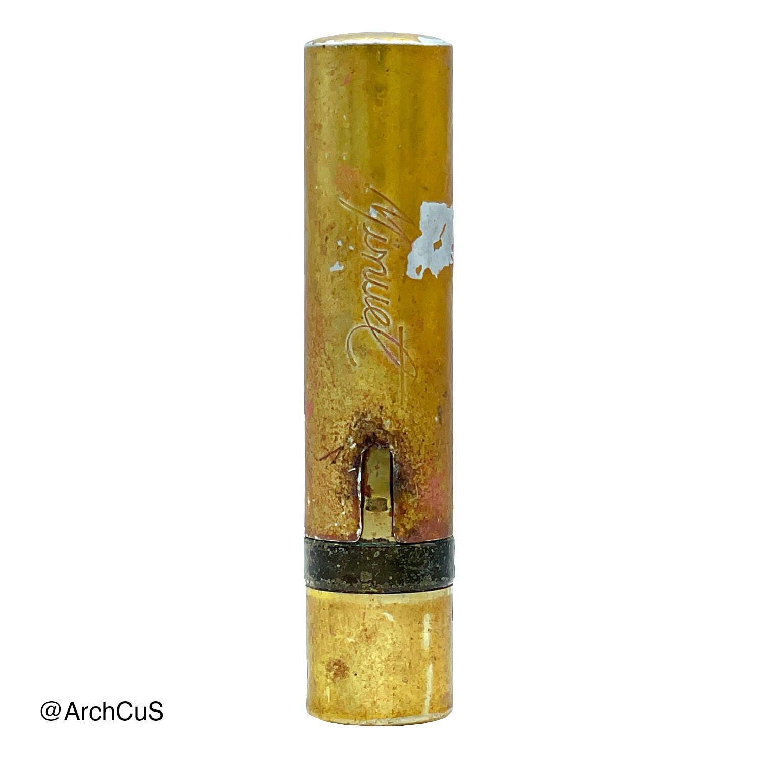 Golden tube with pinkish-brown lipstick "Minuet." Brand name engraved on side.Collection