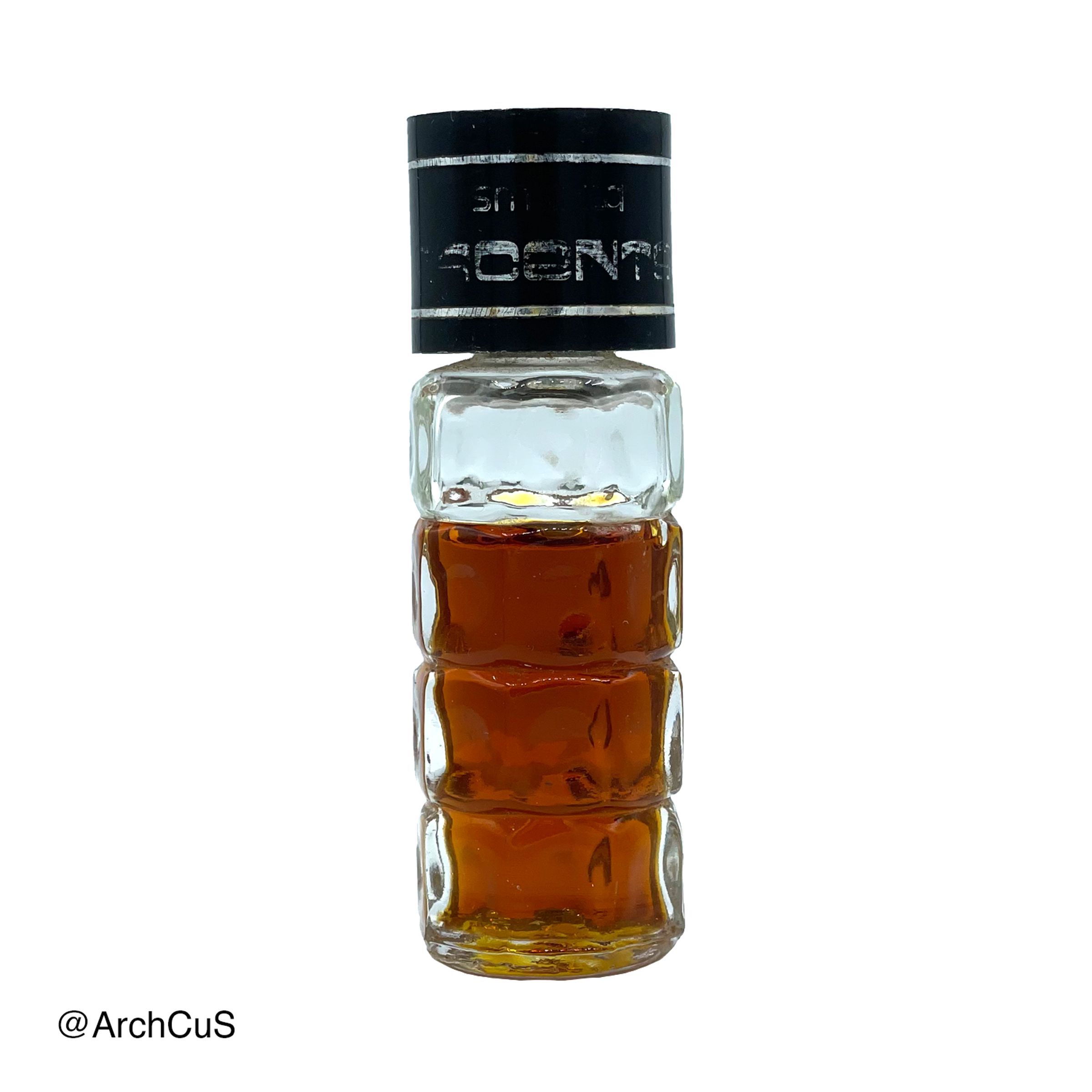 Glass bottle with black plastic cap, of "Smarža Akcents" perfumeContext