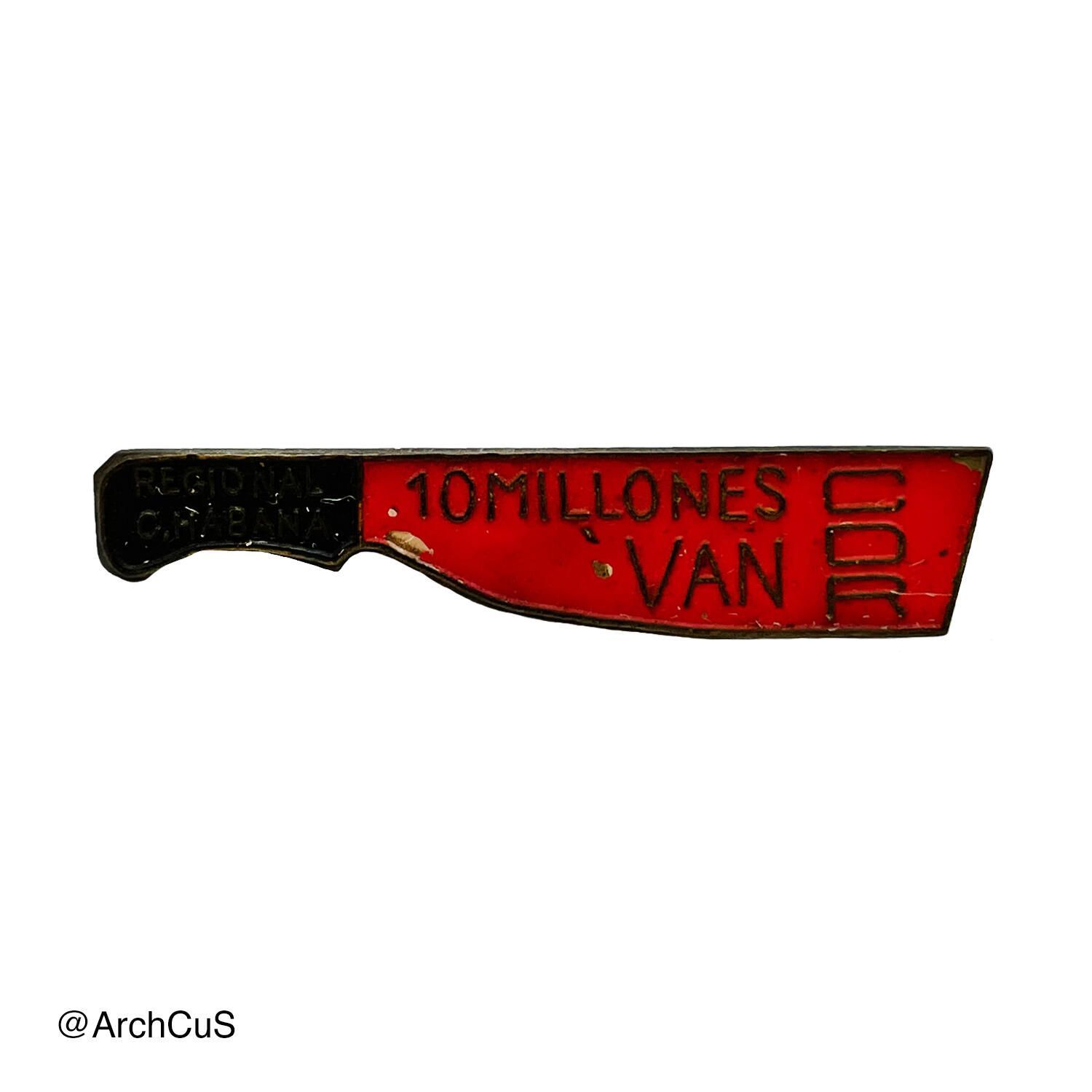 CDR propaganda pin from CDR's "Regional C. Habana" promoting participation in the 10-Million-Ton sugar harvest (1970).Context