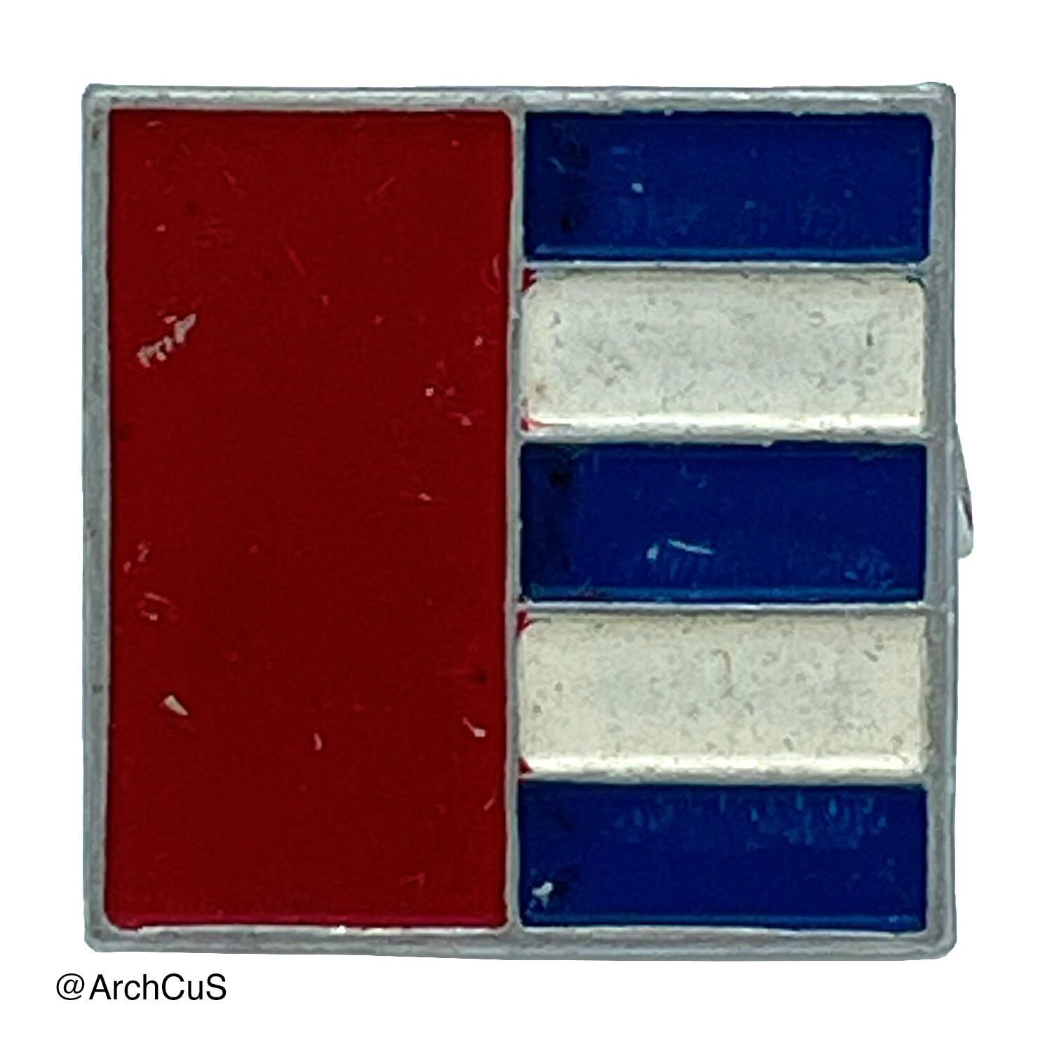 Propaganda pin depicting elements of the Cuban and the Soviet, Chinese, or Vietnamese (and overall socialist) flagsCollection