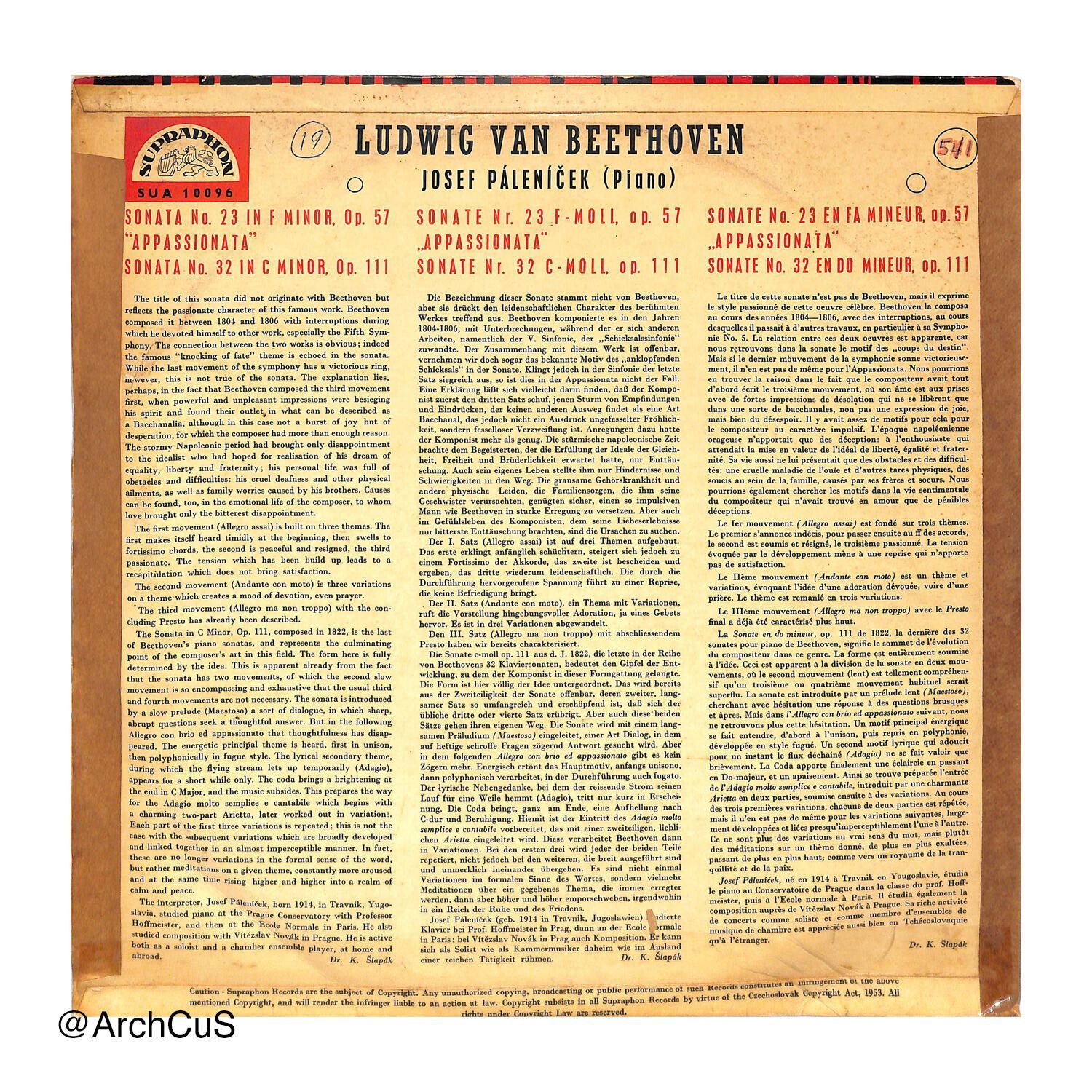 This album hosts two of Beethoven's sonatas as performed by Josef Páleníček.Audio Format