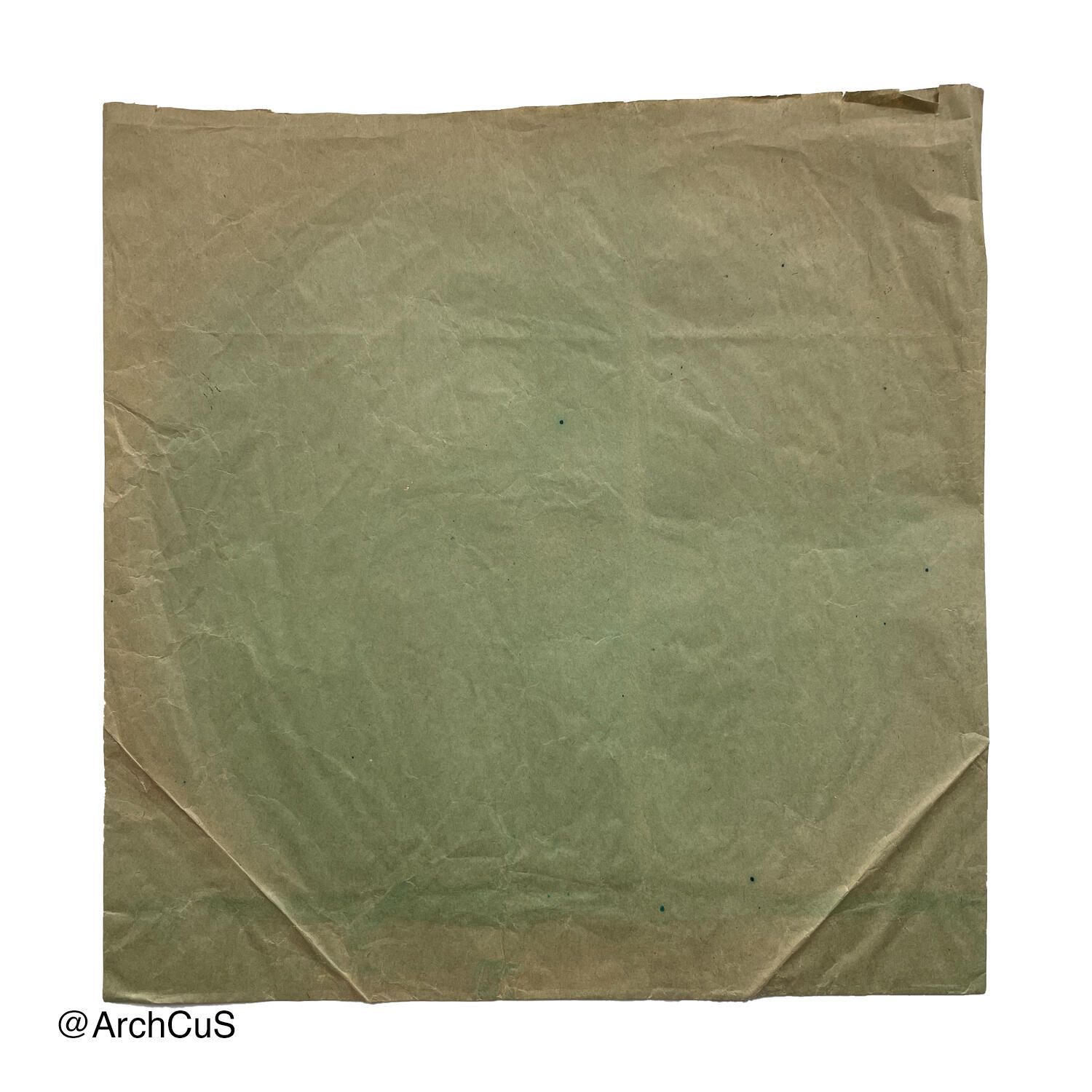 This empty record sleeve was found with other records which all had casings. There seem to be some markings on the sleeve, however, they are illegible. The record sleeve has been repaired with some kind of tape on one side and clearly has been used to house vinyl.Created By