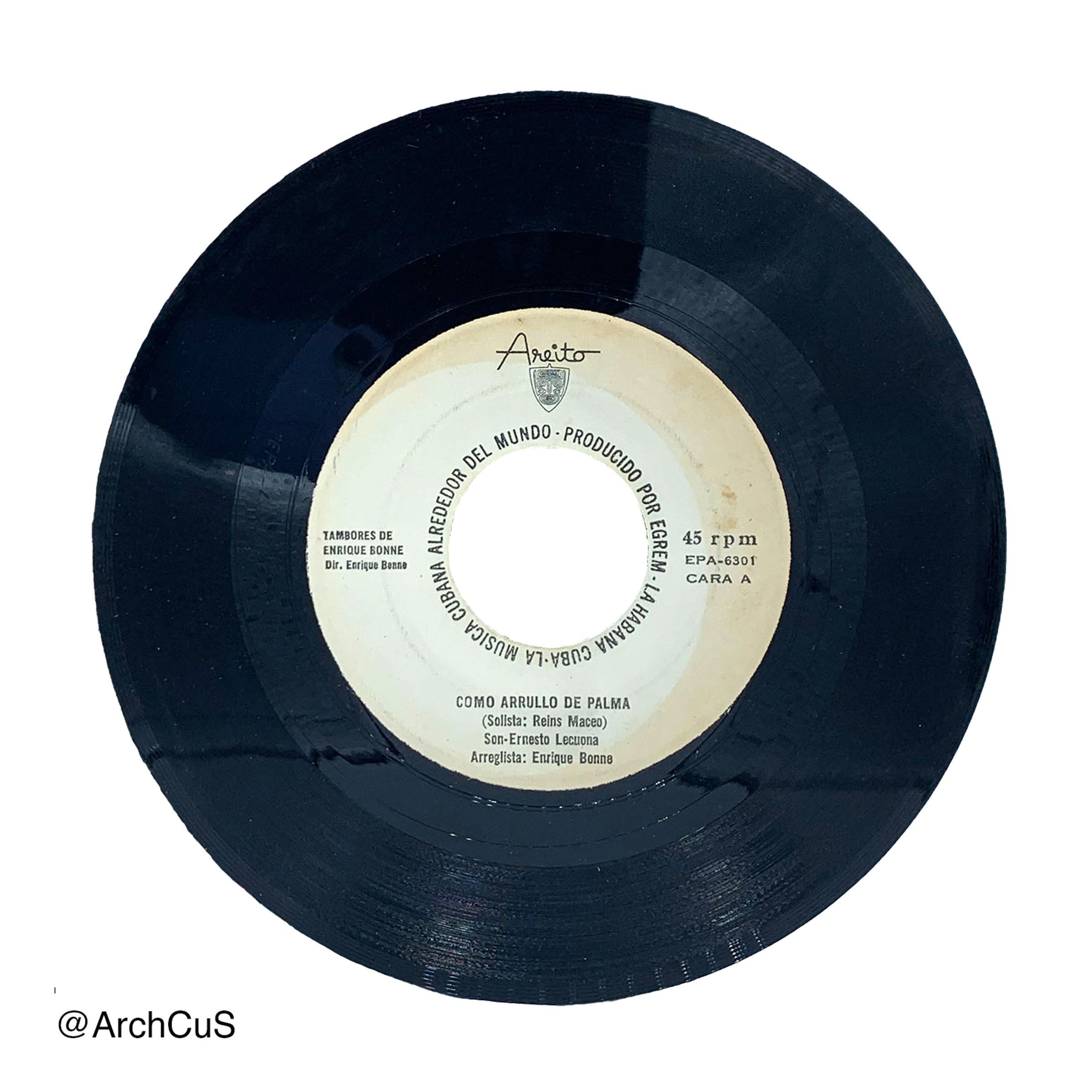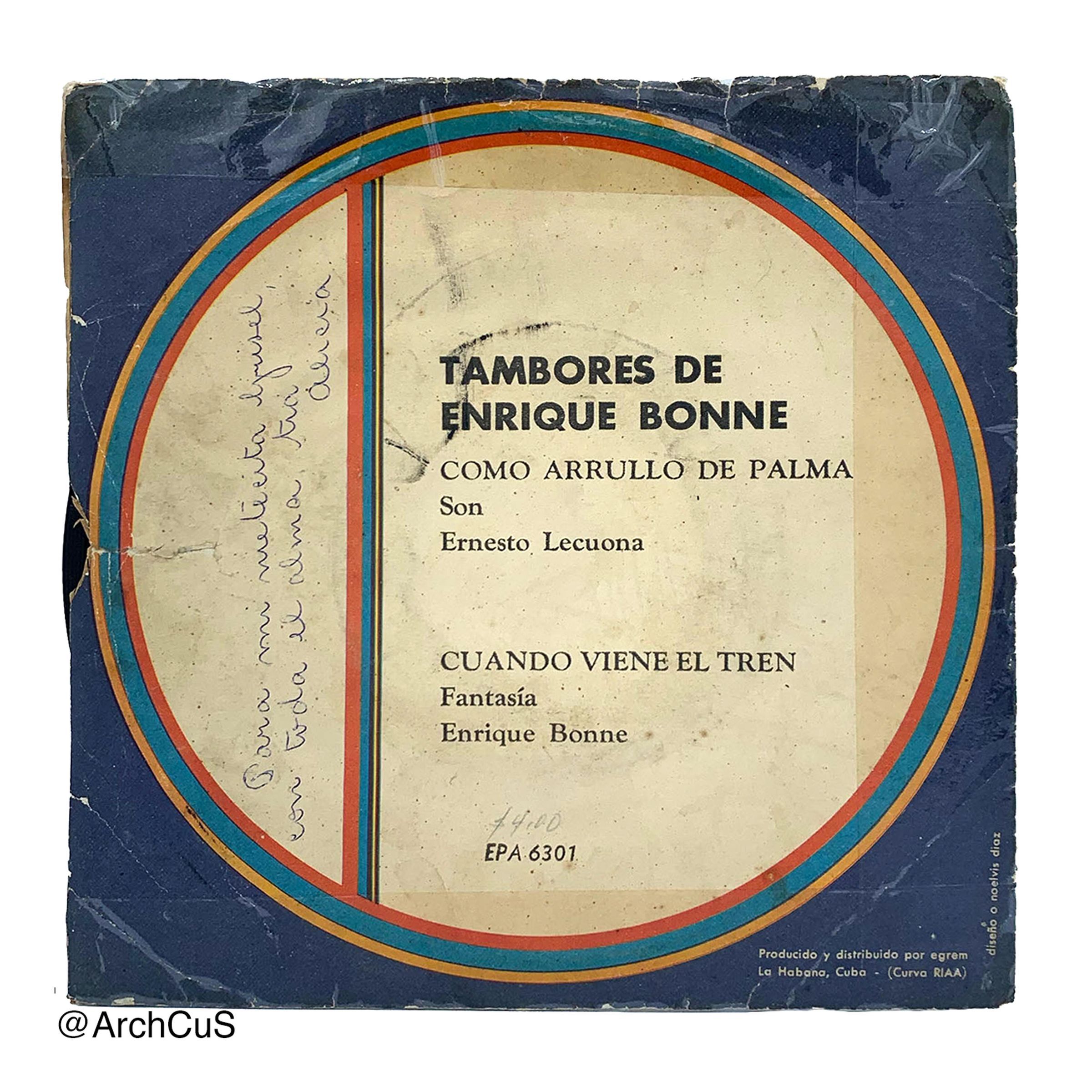 A 45 RPM album containing two songs performed by Tambores de Enrique Bonne, a percussion ensemble arranged by Enrique Bonne.Context