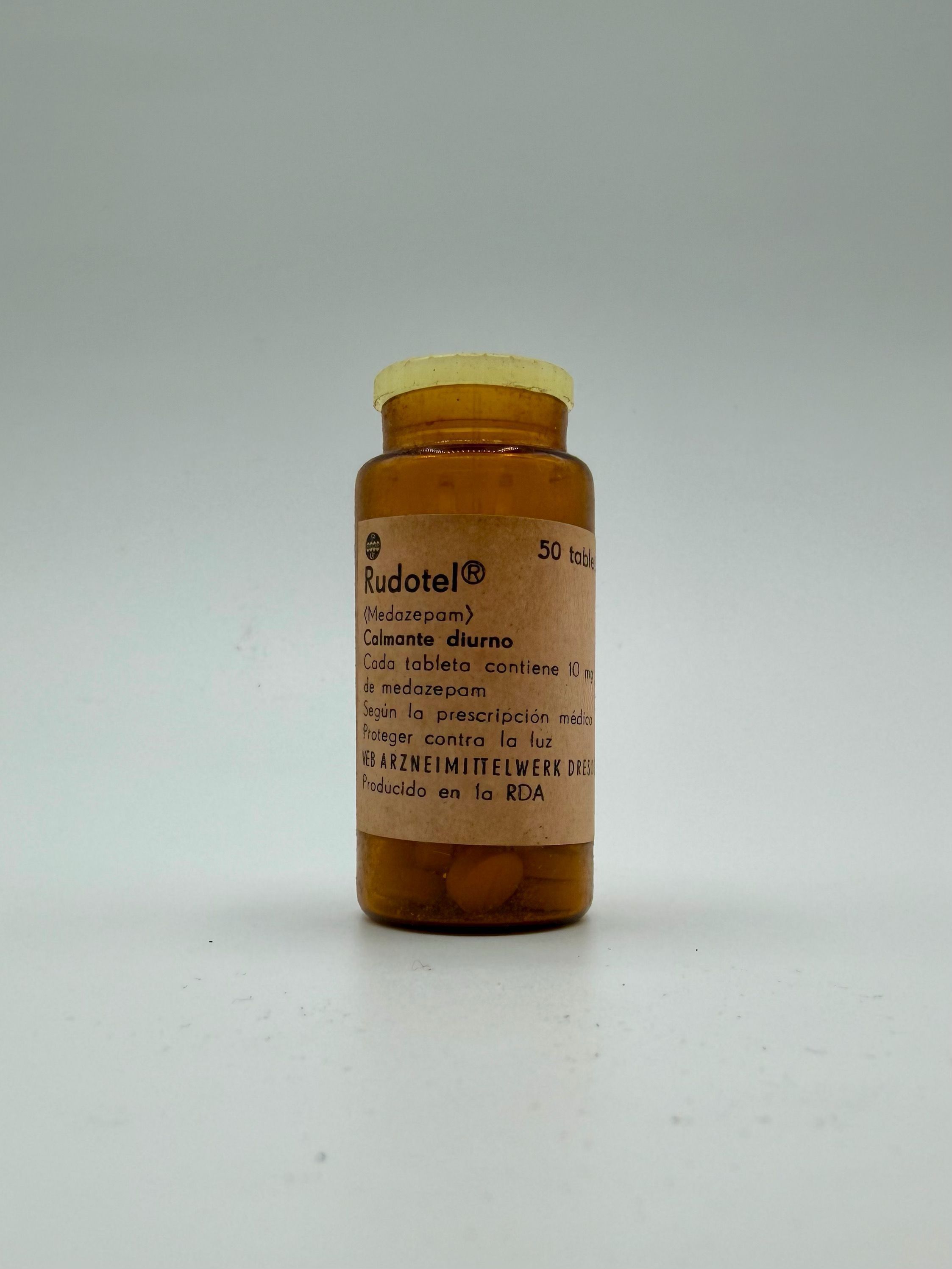 Rudotel® (Medazepam), 10 mg. Produced under the label Germed by VEB Arzneimittelwerk Dresden in the German Democratic Republic (GDR).