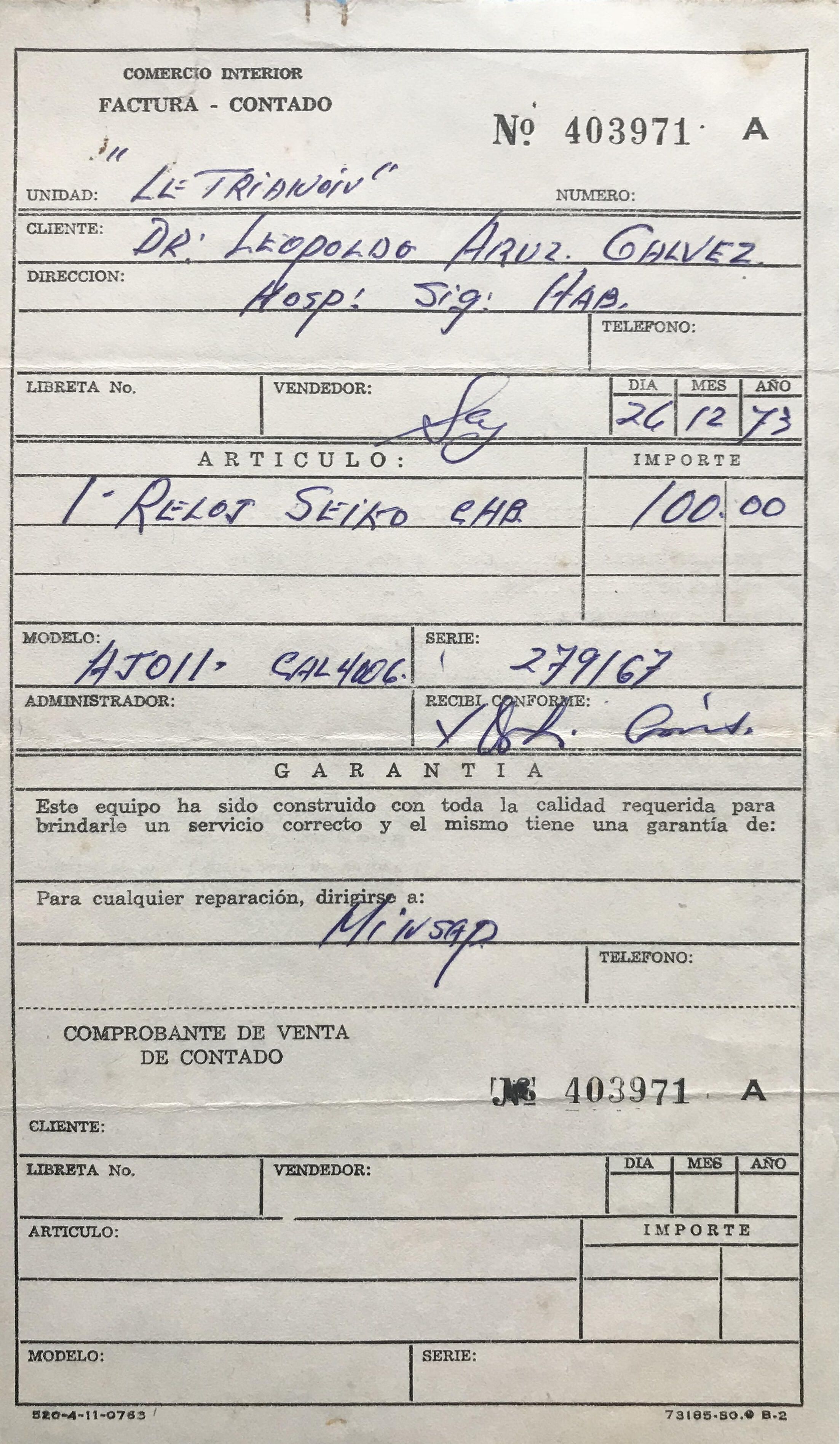 Sold to doctors in 1973.Collection