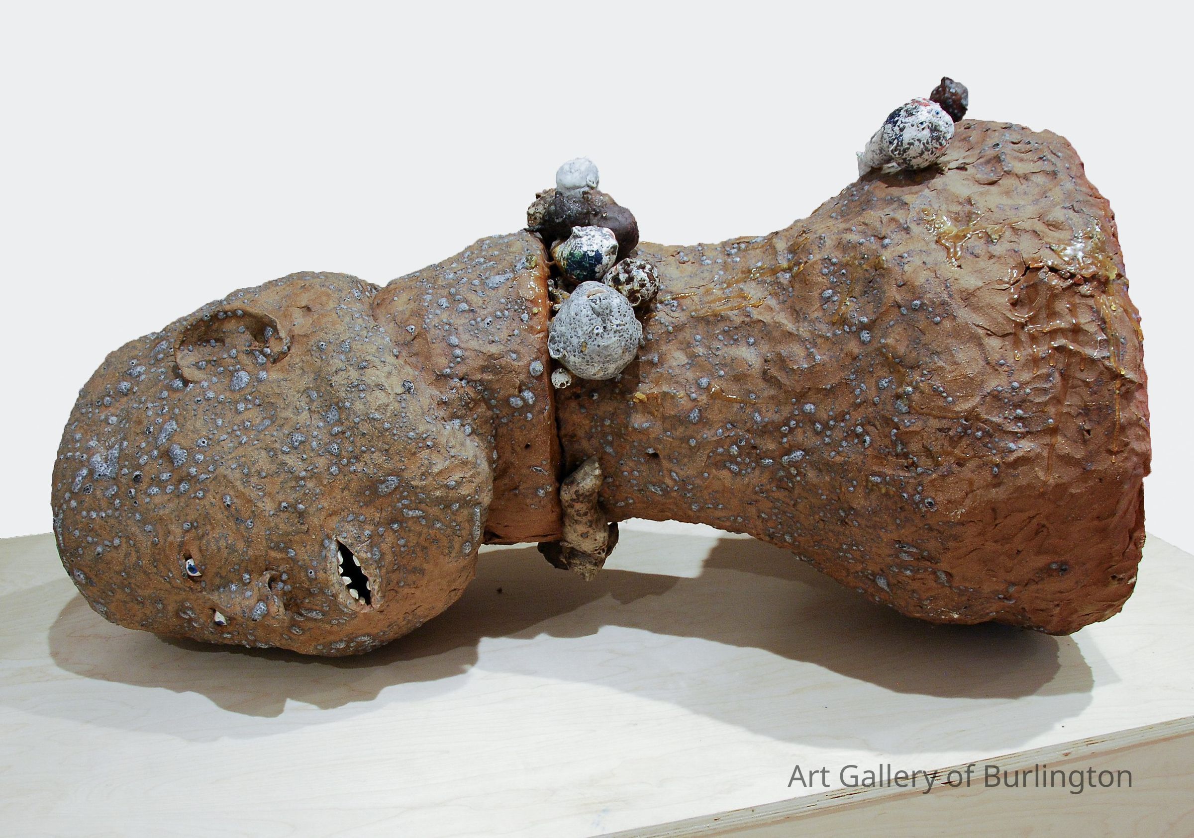 Piech’s figures often look mischievous, sometimes illustrating the bad behaviour of children, or the child in all of us. Her first degree was in religious thought, which informed all her work and led to her interest in Hieronymus Bosch, particularly his painting "The Garden of Earthly Delights" (c.1490–1500). Inspired by Bosch, her "Seven Deadly Sins Garden Bench", is her idea of a being whose carnal desires have distorted its body, while the little critters with big heads that crawl all over the piece are beings who dwell too much in their minds. This distortion is further accentuated by the glaze that looks like rotting flesh – a texture she often achieved by adding expired canned food to her glaze recipes. The seven deadly sins depicted are pride, envy, gluttony, lust, anger, greed and sloth. These are also written on the bottom of the foot.