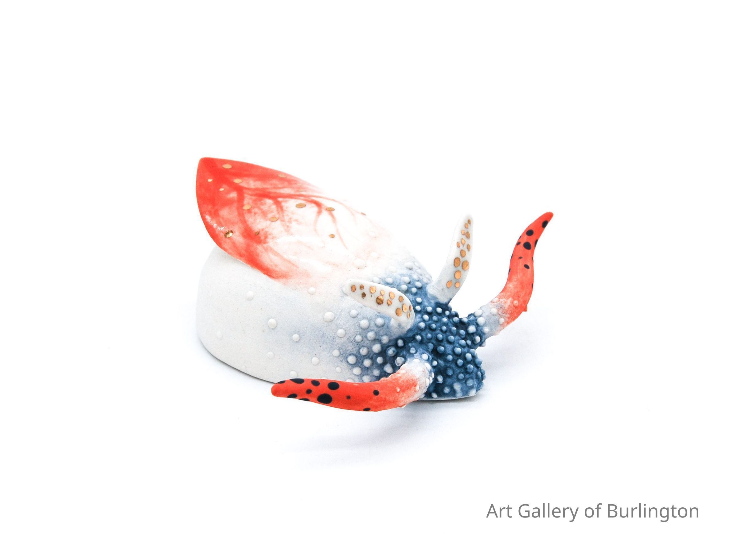 Hand built, press mould porcelain, cone 6 electric firing, glaze, underglaze, 24k gold lustre | Fabriqué à la main, moule à pression pour porcelaine, cuisson électrique cône 6, lustré or 24kAcquisition
