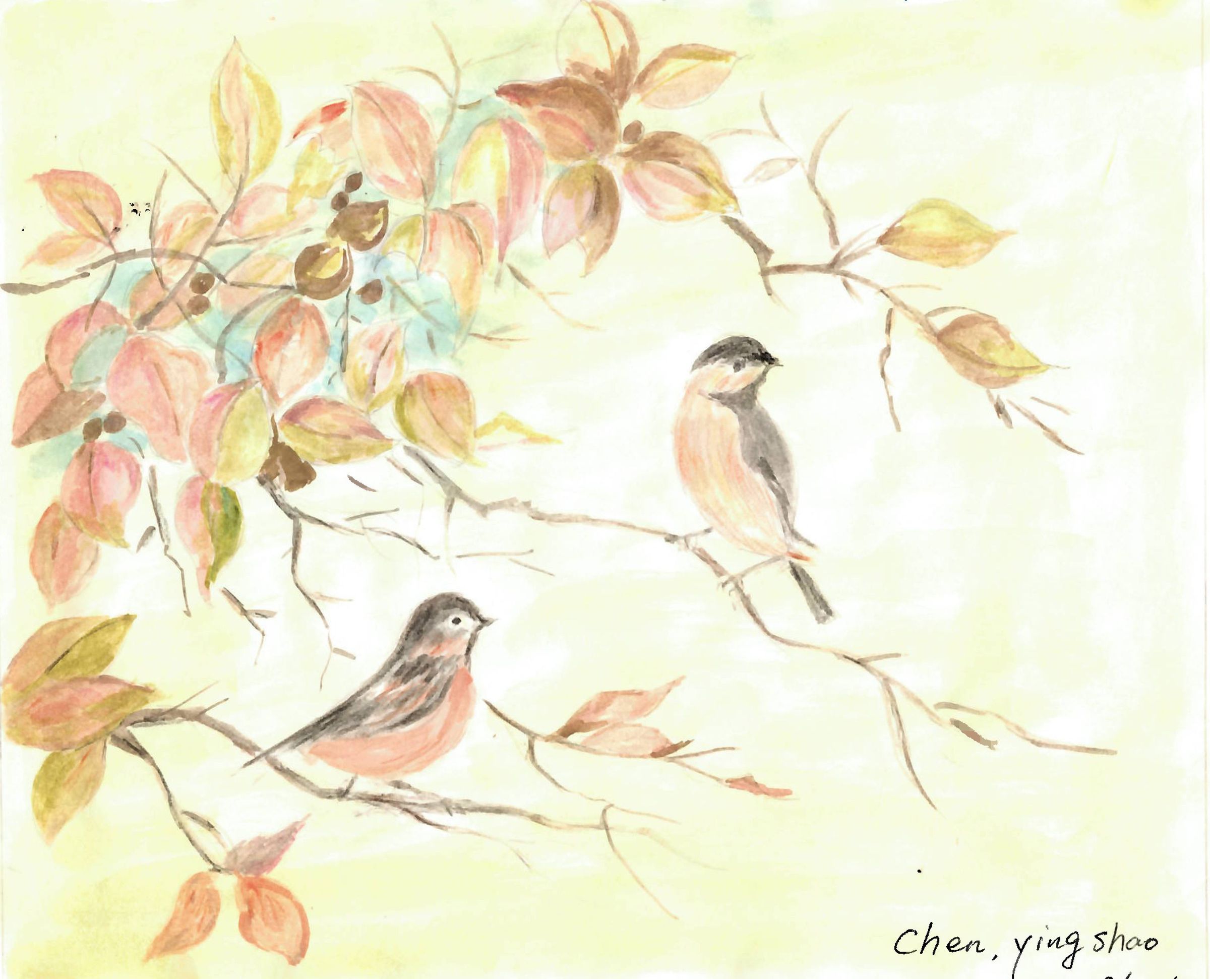 On Lok Gee - Ying Shao Chen - 小鳥結伴而歸 Birds Come Back TogetherDescription
