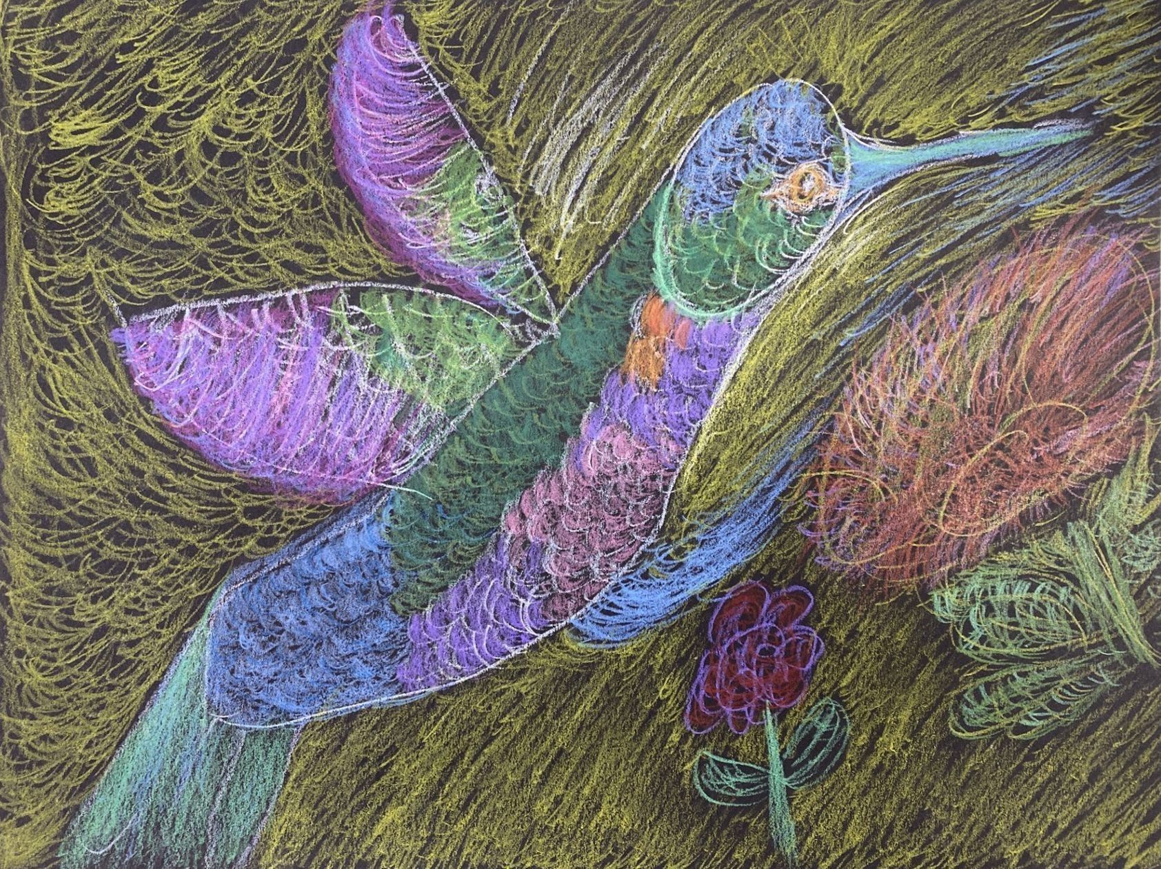 Fairmont - Dr. Qing Xu - Hummingbird - 9x12 col pencil on blk paper - Selected