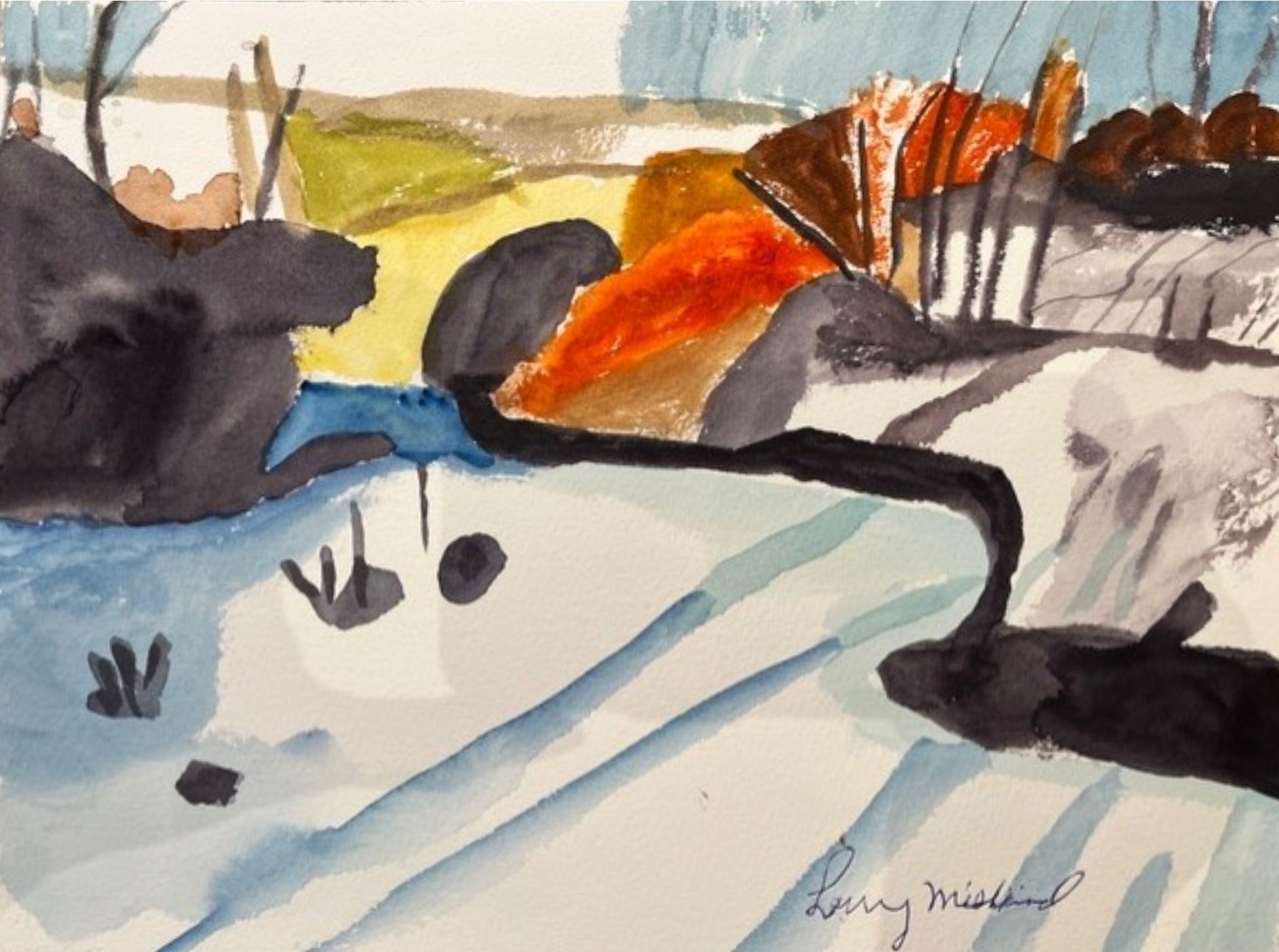 Carlisle - Larry Mishkin - Gobble Creek in the Snow - 9x12 wc