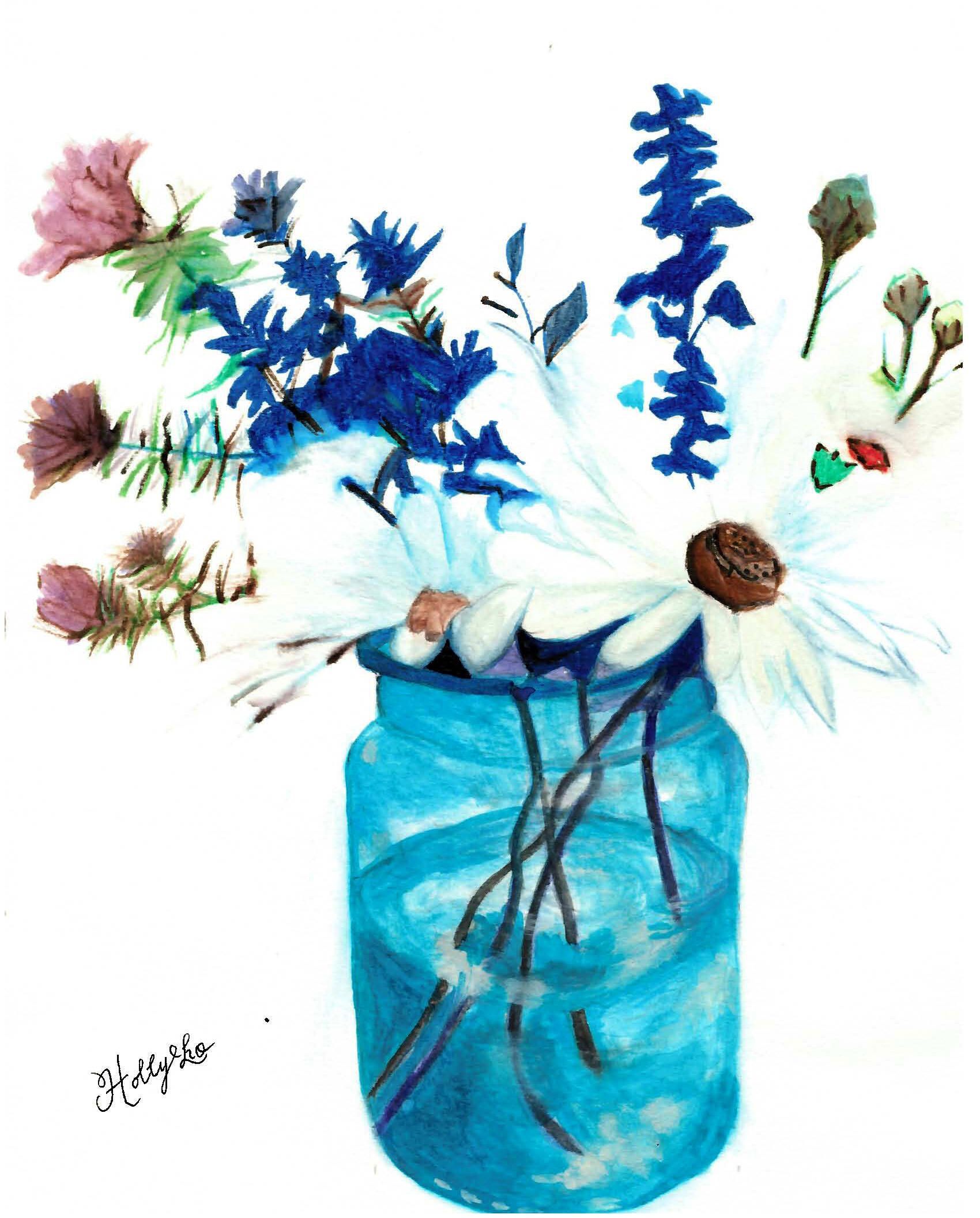 Lai Fong Ho, born in Hong Kong, hadn’t done any artwork since taking a few drawing classes in elementary and high school. She says she likes the AWE online art class because it gives her flexibility to take the class at home. She was especially grateful for the at-home activity during the height of the Covid-19 pandemic. She likes being able to see the teacher doing the demo online, and following along to gain firsthand experience of different techniques. She has learned about color themes, how to mix color, and how to create 3-dimensional images. Lai Fong enjoys working on various subjects including plant life and portraits, using watercolors. She reports that the class has helped her build up her self-confidence.