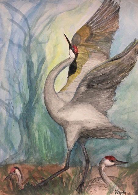 On Lok 30th Fri - Joyce Lashley - Sand Hill Cranes 15x11 - Acrylic on Paper