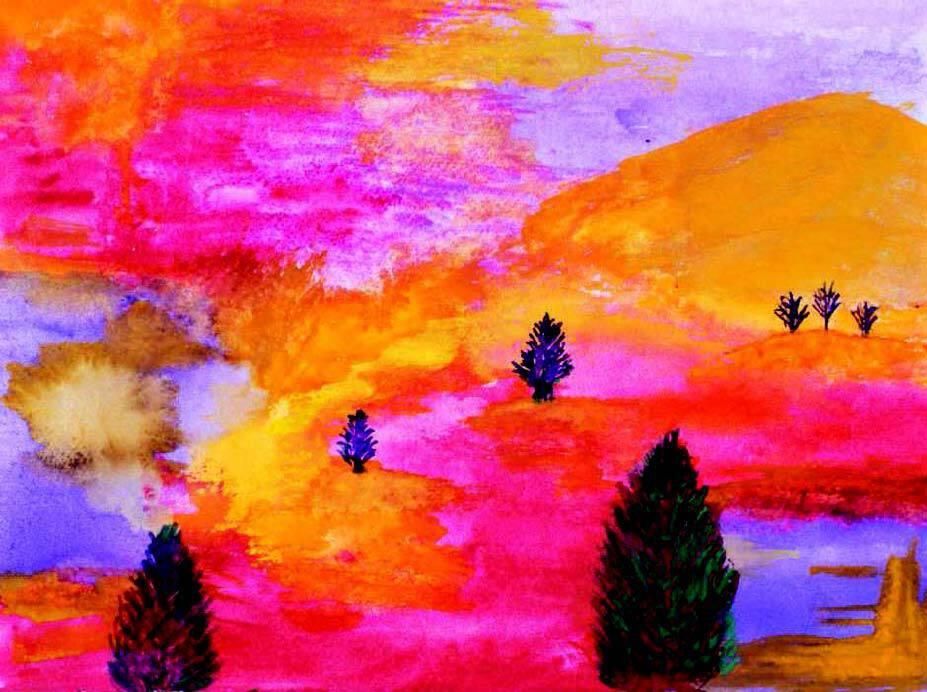 Doris began painting and sculpting ten years ago and works in watercolor, acrylic and encaustic. She favors geometric designs which are featured in much of her work. “So many people are reluctant to do art,” she says, “But it’s one of the best things to do. It’s the doing that’s the fun part.”