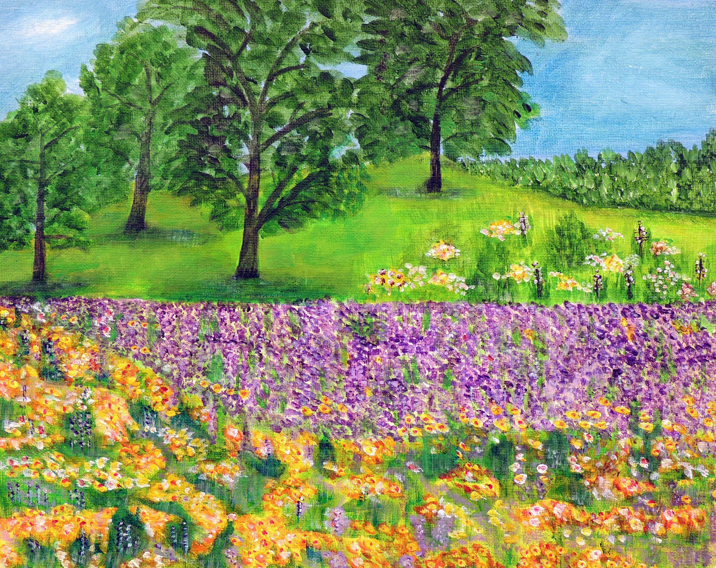 She describes herself as a happy person who loves to be of service to others. In addition to caring for her husband and apartment, she helps out at the local farmers' market. AWE classes have been her first experience in art. Her favorite medium is acrylics.