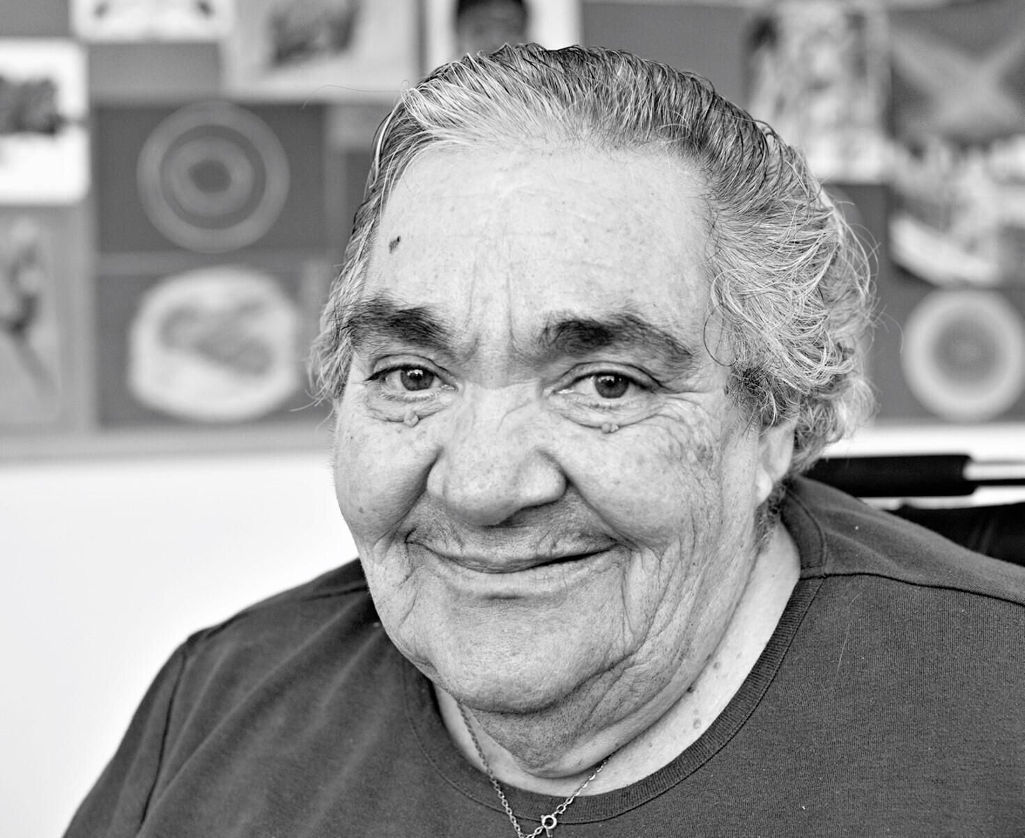 Ida’s easygoing charm, sunny smile and vibrant spirit make clear why her nickname is “Beautiful,” as she blushingly confides. Born in San Francisco in 1940, a stroke paralyzed her right side when she was two years old. However, Ida declares, “I don’t feel like I missed out on anything. I did everything a normal person would do.” Her parents immigrated from Northern Italy, and she grew up in North Beach “when it was special.” She cherishes memories of summer evenings when children would play kickball on Telegraph Hill as parents chatted on their front steps and of leisurely Sunday strolls with her family to Fisherman’s Wharf and Union Square. One of life’s high points occurred when Ida was asked to sing for a benefit at the Fairmont Hotel. A fan of Doris Day and Al Martino, she still sings in the shows at Laguna Honda. Ida always liked art and loves to color. Even her wheelchair is decorated with a pink butterfly and violet flowers. “I can stay here in the studio all day and draw,” she laughs. “I always wanted to and never got the chance. Now I have that chance.” Her advice: “Don’t quit. I never quit when I felt I wanted something.”