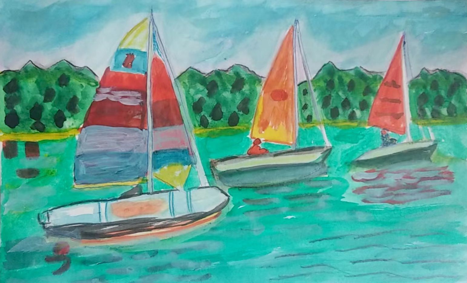 Jun Ming Wong - Sailboats - Visitacion Valley - 12x9 wcDescription
