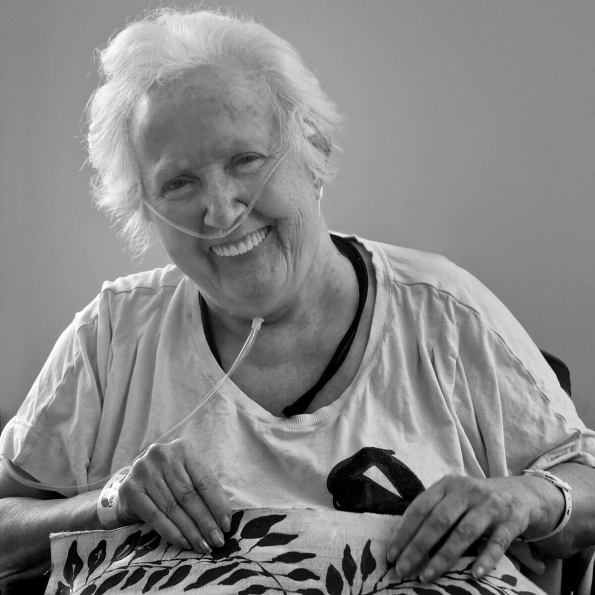 With her gentle smile and blue eyes shining, Mary likes to recite these words from a poem she wrote as a young mother going through a divorce. She has used the difficulties she's faced in her life to find her own "gift of genius." Born in Canada in 1946,she married at the age of sixteen to a young serviceman and eventually, realizing a difficult future for her family, gave up her four children to be raised in foster homes. She subsequently spent over twenty years on the streets of San Francisco, living in local parks, where she listened to other people's stories, discovered the beauty of nature and developed a passion for trees. "God showed me the sunsets and clouds," she says. A laundromat offered her shelter at times and she periodically helped out at the Shamrock Bar. To this day, her bible is her constant companion.Mary, who describes herself as a seeker and thinker, did some art in grammar and high school and is an avid photographer, especially of her beloved trees, but she attributes her current art to the AWE staff at Laguna Honda. "When I first started," she says, "I didn't think I could do it.