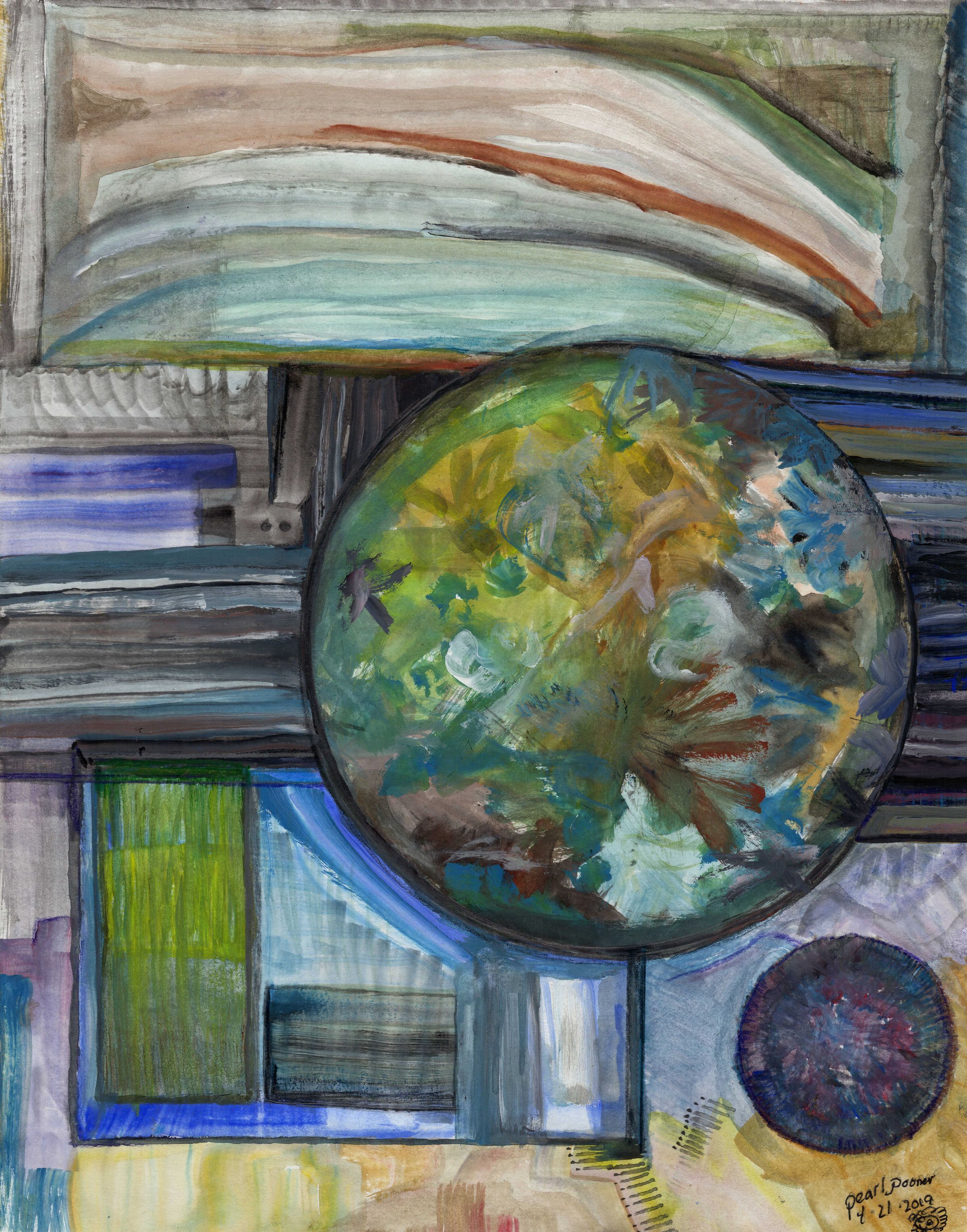 Pearl took art classes at City College, but had to give up studying for many years while she worked and raised a family. She began painting again just a few years ago. Now, she carries with her the two white sheets of paper from her hospital days. Although she is in pain much of the time, the crude drawings remind her that she is a survivor and an artist.