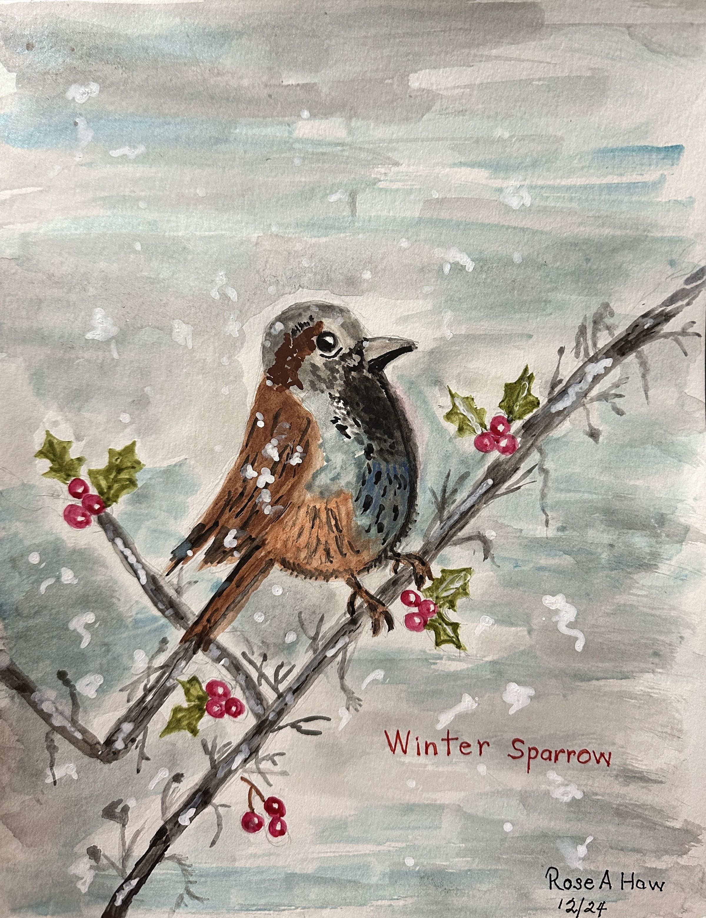 On Lok Gee Center - Rose Haw - Winter Sparrow - 9x12 wc - Selected