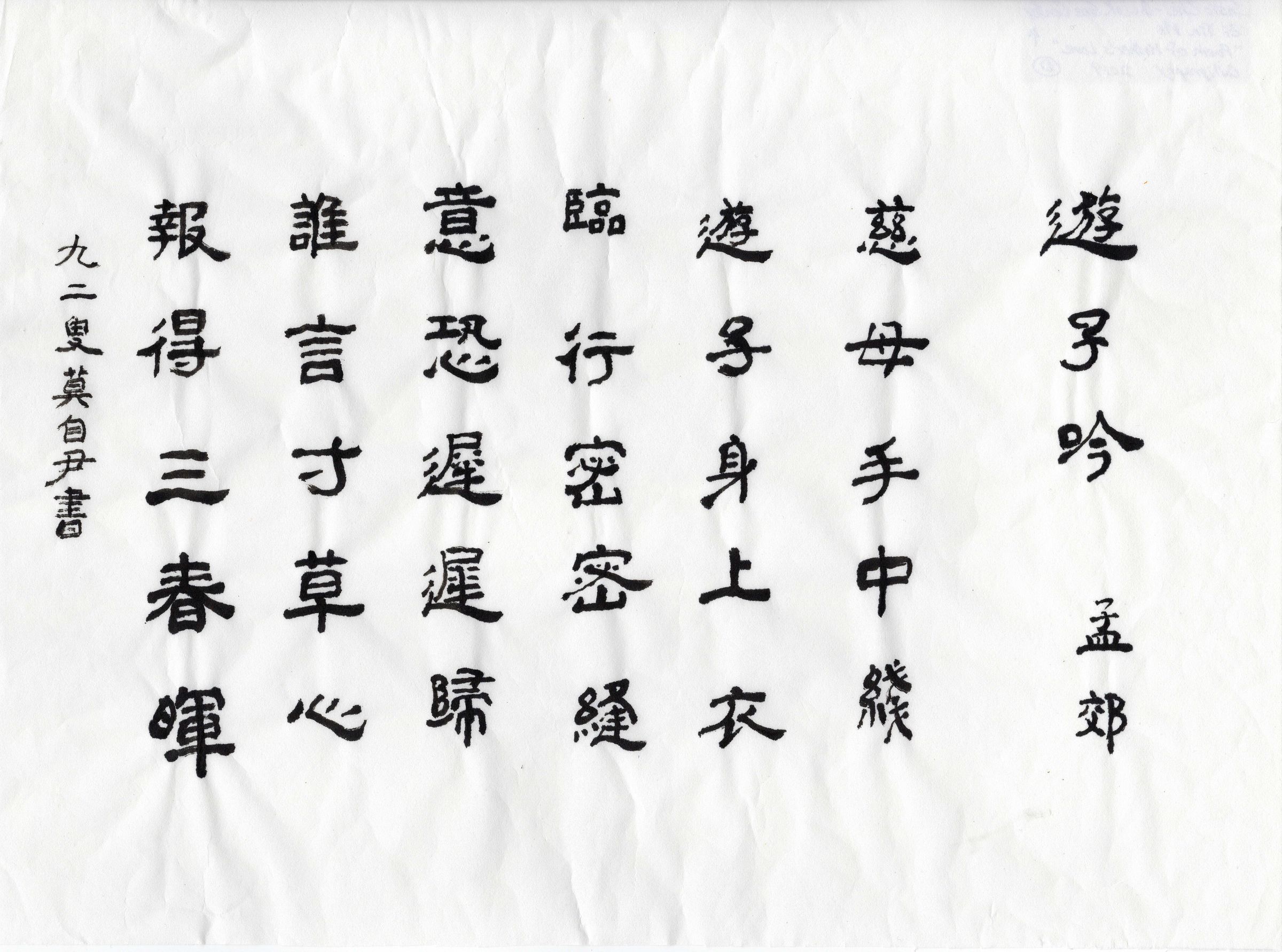 On Lok Gee Center - Zi Yin Mo - Poem of Mother's Love - 2019Description