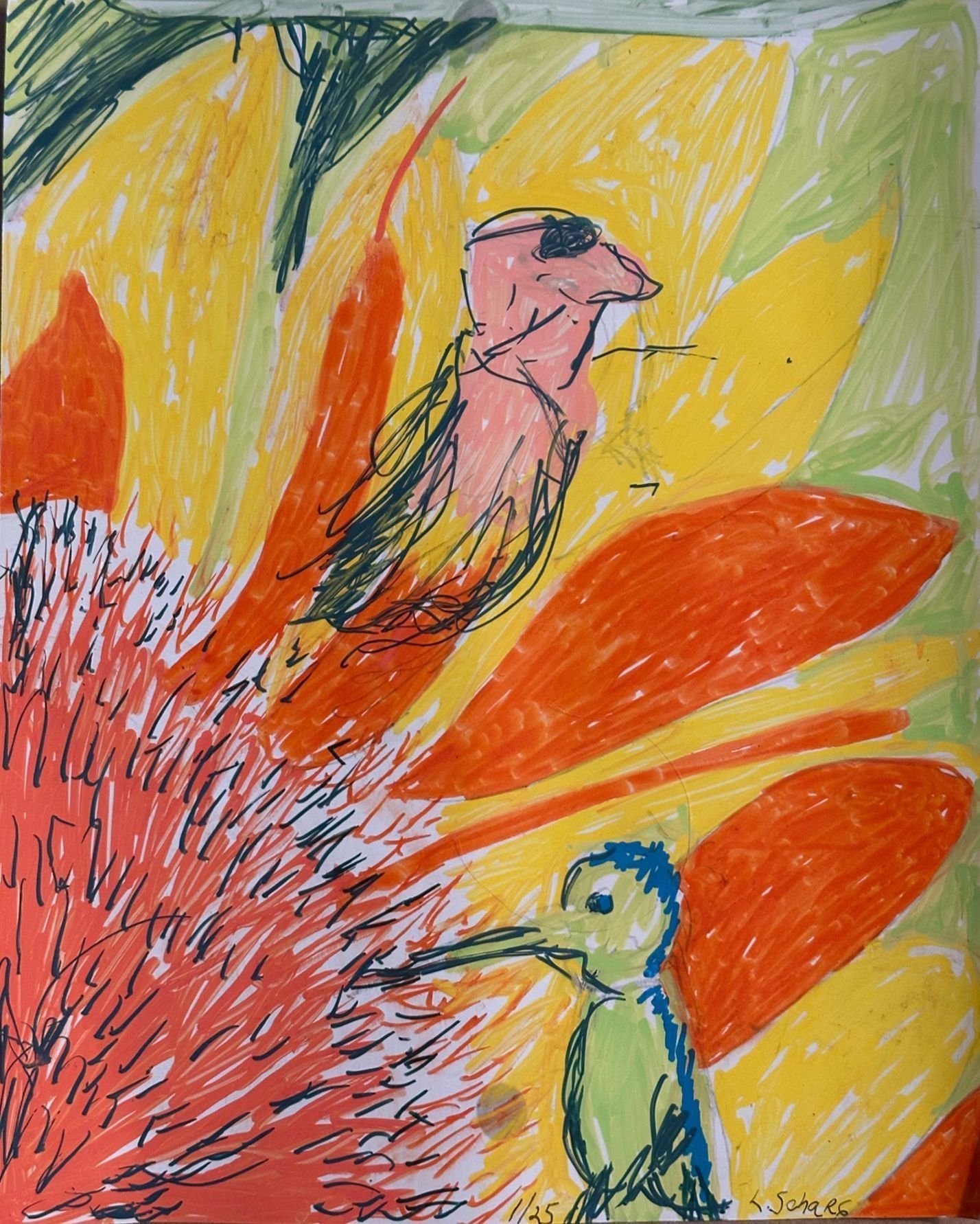 Openhouse Sat. - Linda Scharg - The Birds - 9x12 Acrylic markers - Selected