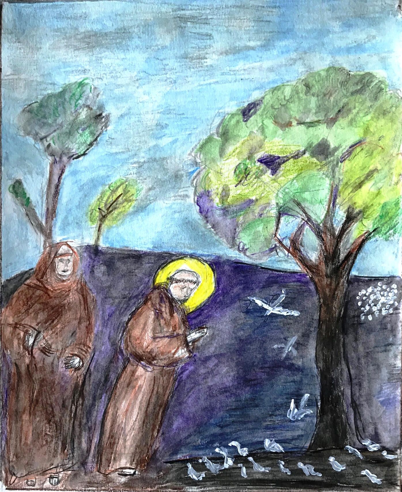 Paula Tschida - St. Francis Preaching to the Birds (after Giotto) - Open StudiosDescription