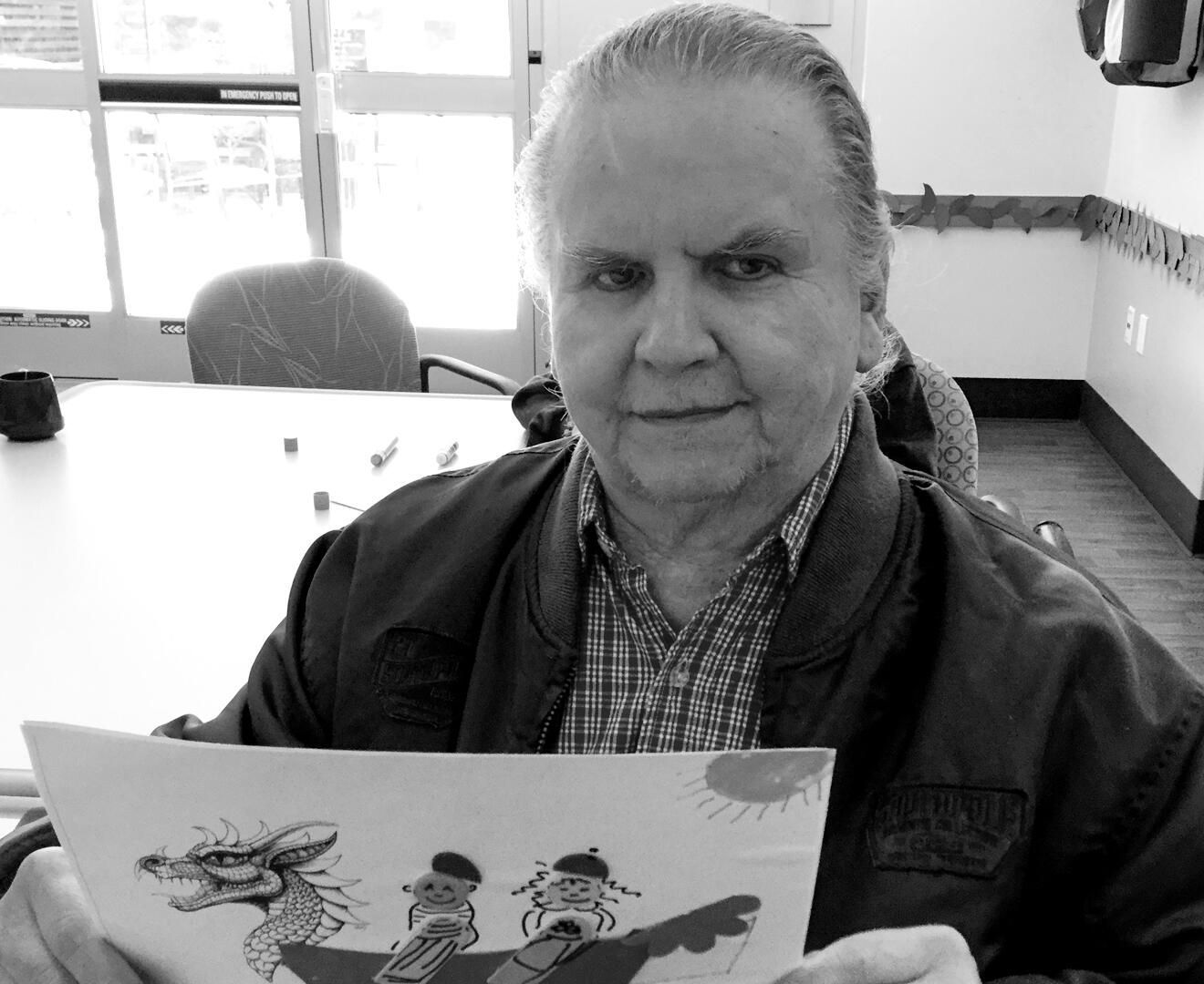 Philip worked as an electrologist professionally, but always made time for hobbies including skiing and music. A guitar player, Philip was part of a rock band for a number of years and still enjoys playing on occasion. Philip remembers the first painting he made at the age of 25 as a gift for his niece who sadly passed away at a young age from leukemia. While he did not paint again until joining the weekly AWE classes at On Lok in Fremont, he is quick to say what a positive impact making art has had on him, “…art class made me more positive. It taught me about painting, which, over time became easier to do. Now I am able to complete a painting almost by the end of each 2-hour class. I enjoy class so much, and look forward to it every week.”