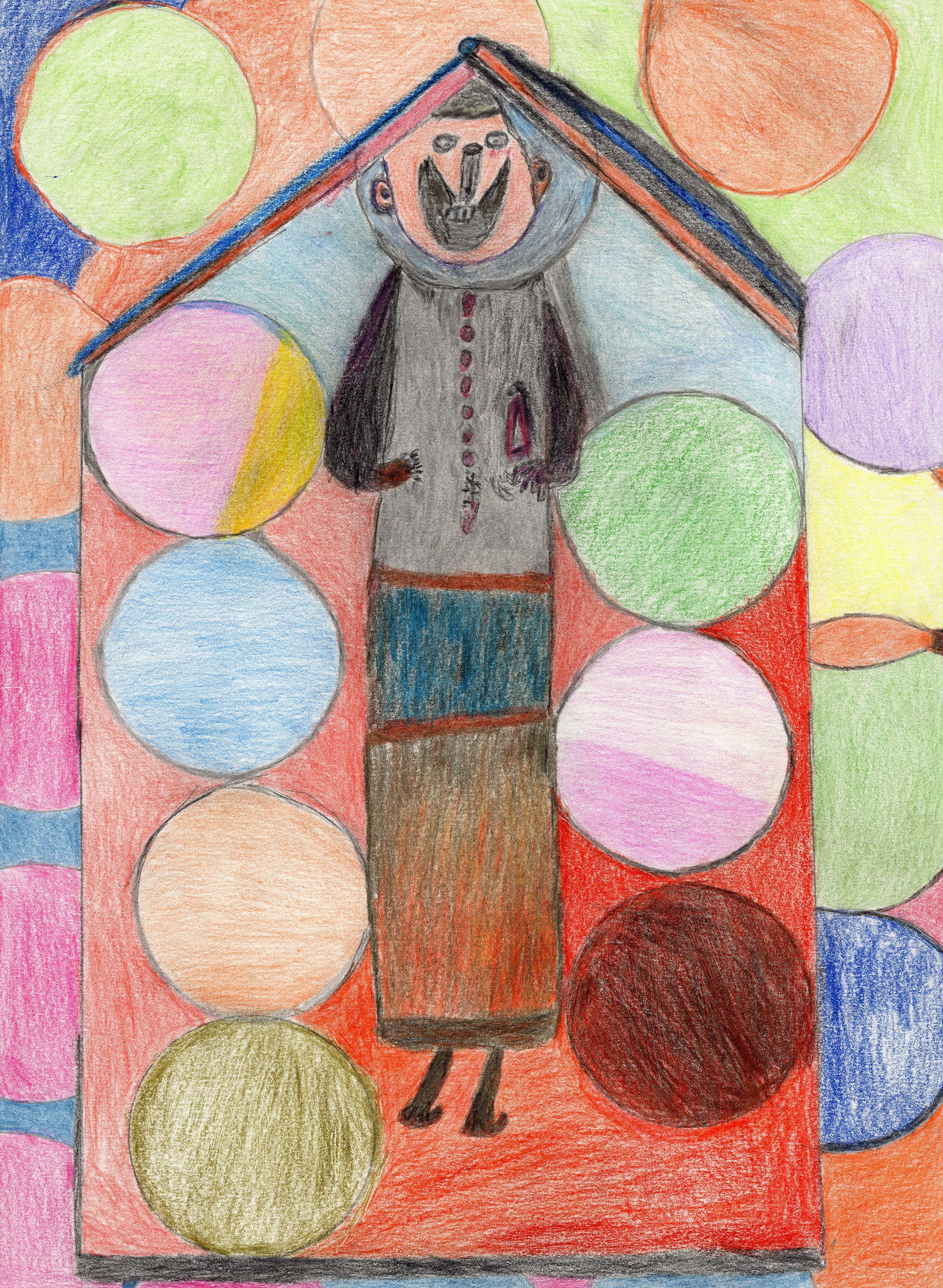 This outgoing elder artist, who says she “loves fun,” embraces life. When she was younger, she'd sing and dance in the streets during Scottish New Year and go to a friend's house with a bottle of beer.
