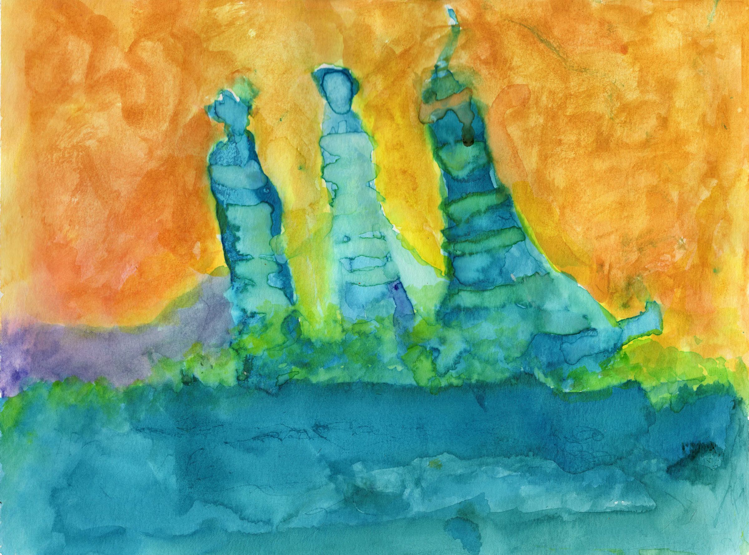 Audiene was born in Northern California where she spent her youth and much of her adulthood. After raising her two sons, she traveled to India and eventually moved there, living for many years in an ashram. That period of her life was one of spiritual and creative richness and growth. “I liked the freedom that I had in India,” she says. She made many friends and spent her time at the ashram pursuing her spiritual practice and creating art. She was deeply inspired by her surroundings in India, which in turn influenced her paintings and drawings.