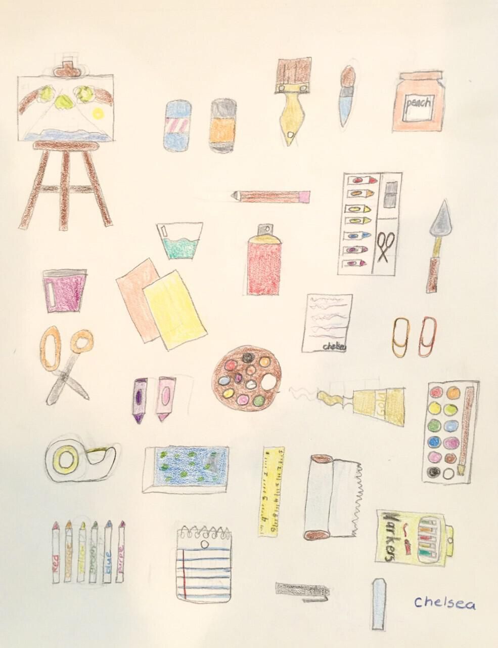 Chelsea Lee is 8 years old. This is her first time taking online class with her mother and she enjoyed it very much. Chelsea completed the artworks in this exhibit using colored pencil, watercolor, and acrylic paint. She said: “I like art because I can be creative and make beautiful artworks. I like to use color-pencils because it won’t leak through like markers and it is easier than other mediums; it is more focus on drawing which I like it better.”