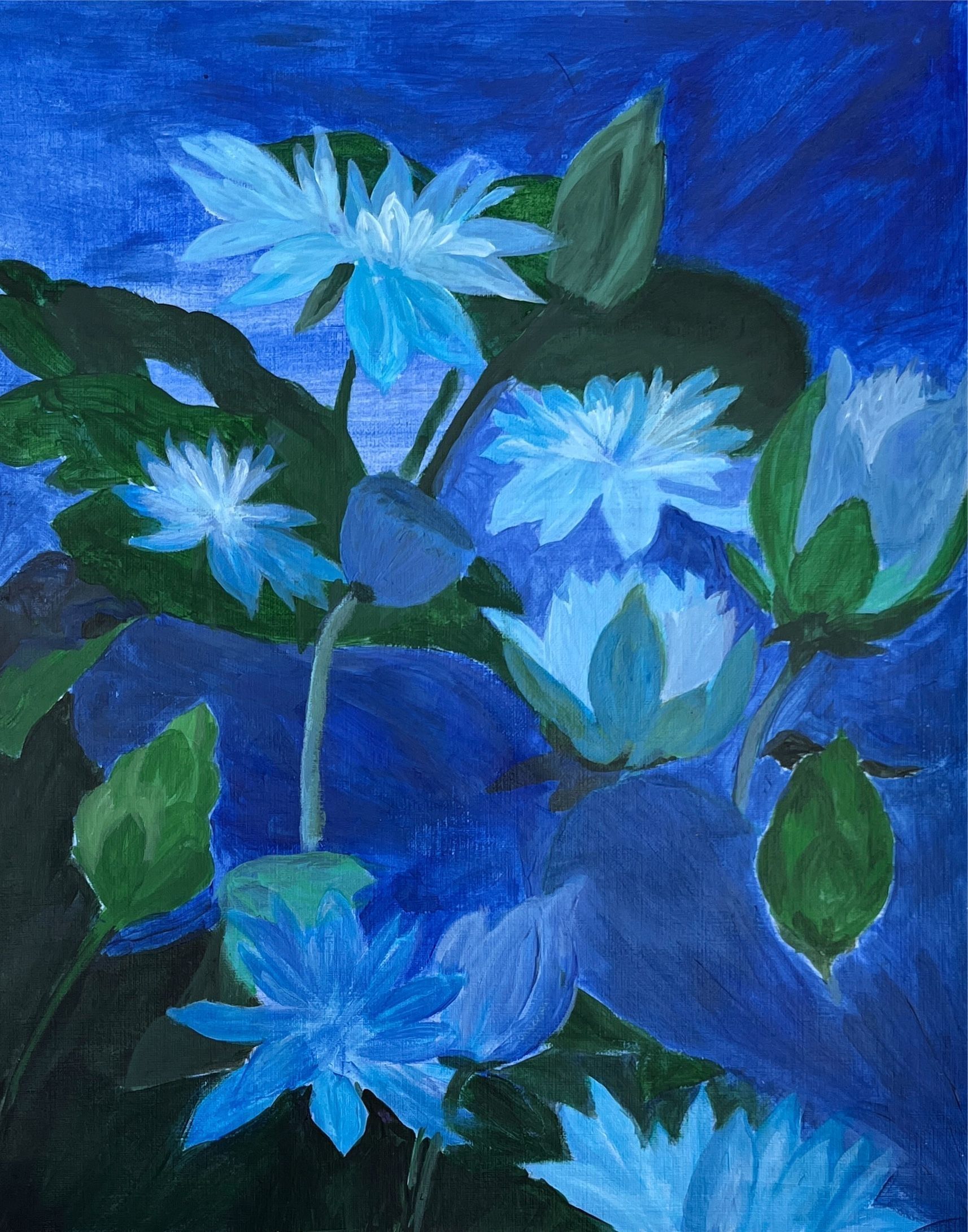 SF Senior Center - Mei Jing Zhu - Quiet Night on the Lotus Pond - 11x14 Acryl on pap - Selected