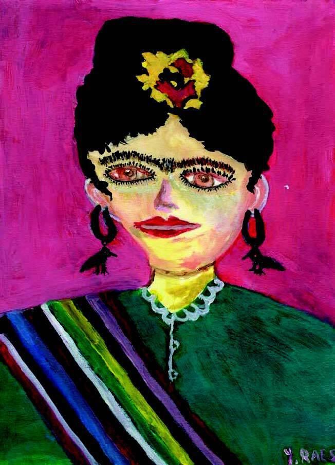 Although Yolande’s parents painted as a hobby, after a disappointing experience in an art class at CCSF, she didn’t paint for several years. She did, however, always watch Bob Ross on TV. Now she is taking an AWE class and enjoying it as much as her back pain permits. “That is why I like Frida Kahlo so much,” she says, “I relate to her!”