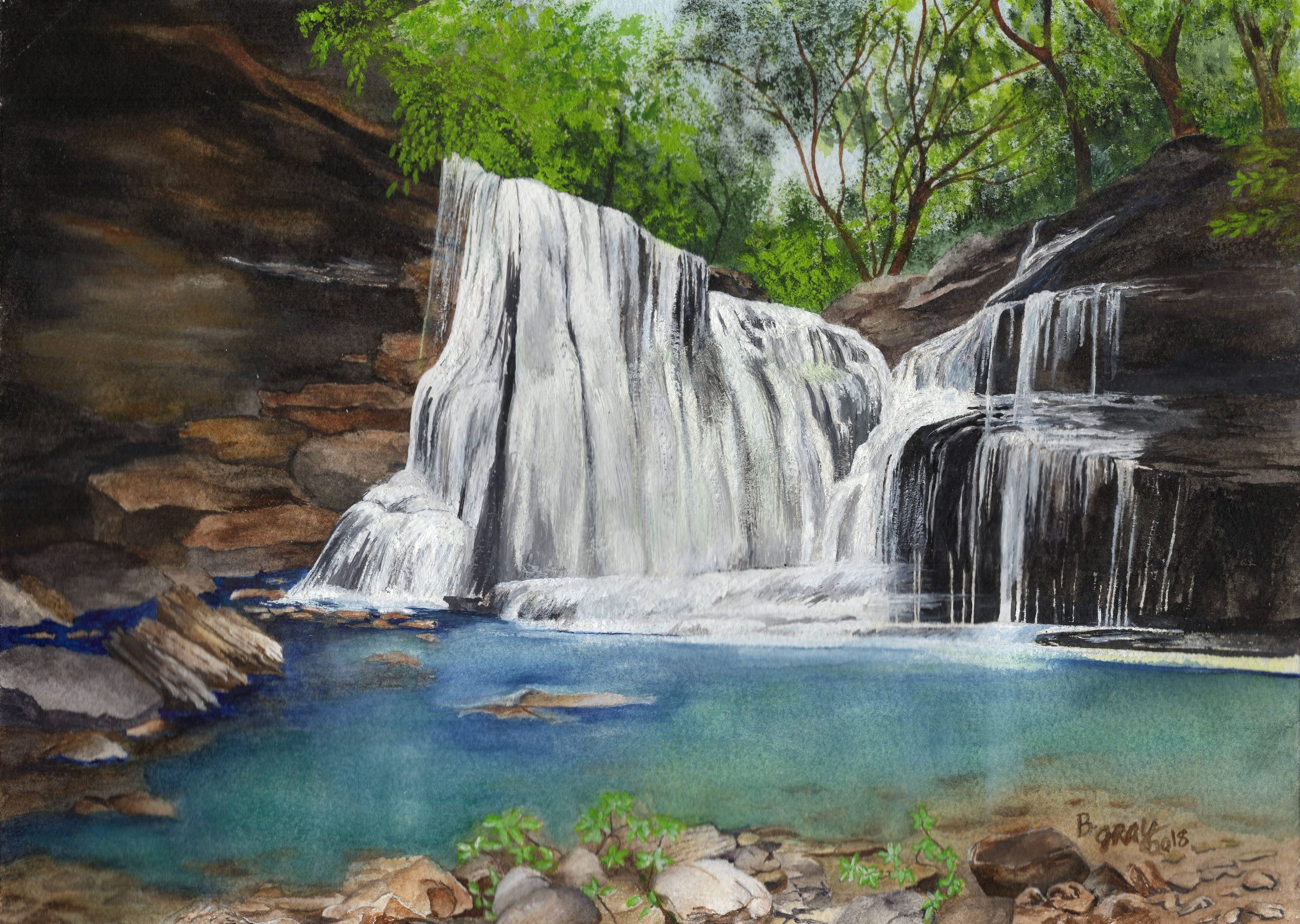 Barbara attended Pratt Institute in New York City, where she learned color theory. She then went to night school to become a graphic artist – designing silk scarves was her first job – and later entered the printing trades. Using watercolor, her preferred medium, she enjoys painting landscapes because of the challenges the constantly changing light poses: “Mother Nature doesn’t stay in one place, but she’s great with color!”