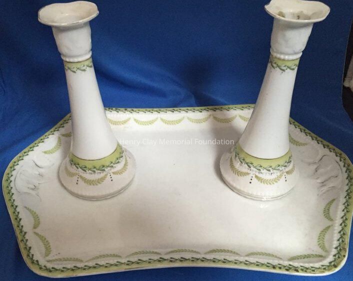 White china, green and gold trim. (b) and (c) have "163" and "22" marked in green (shown on catalog sheet).Dimensions