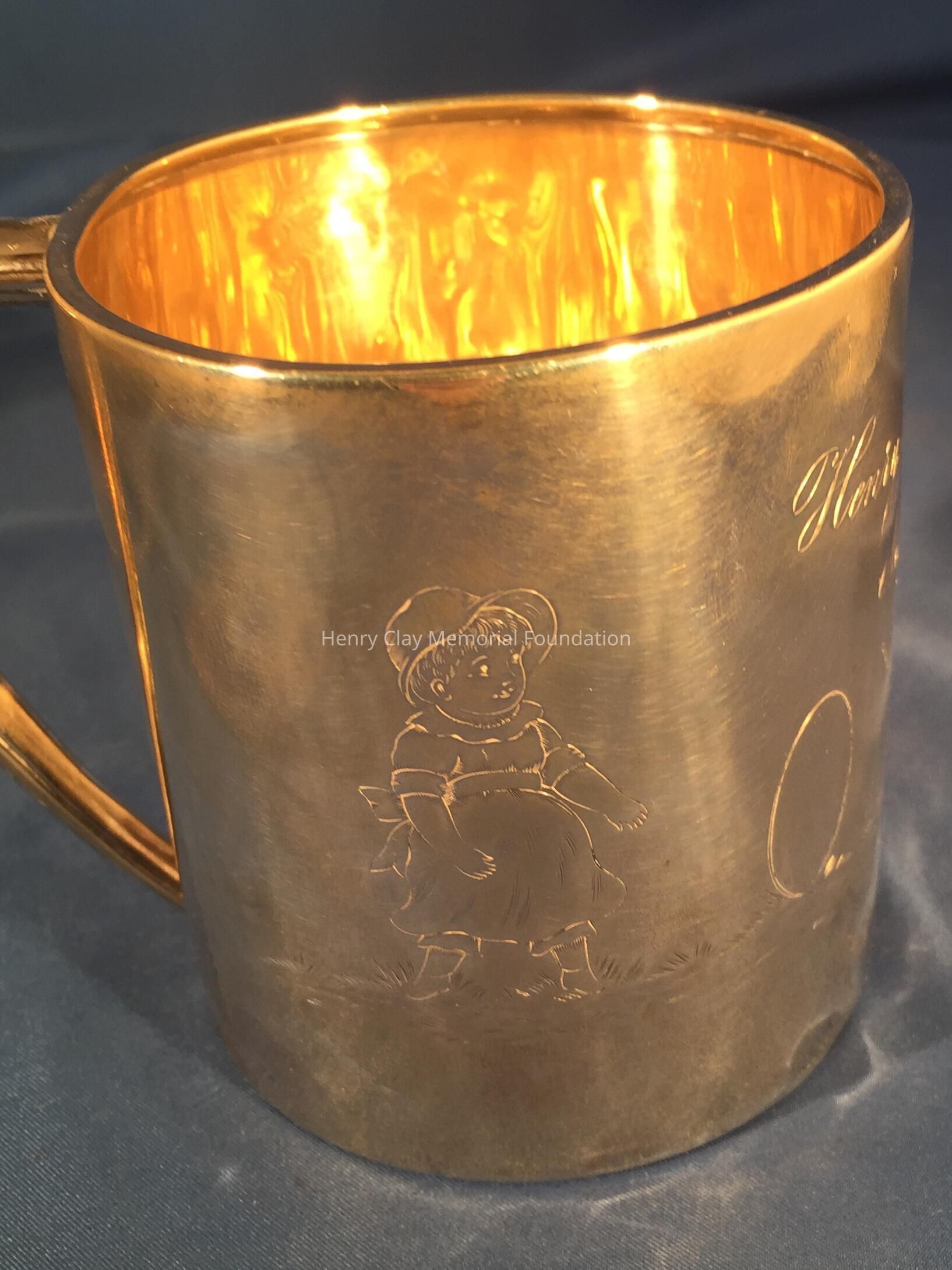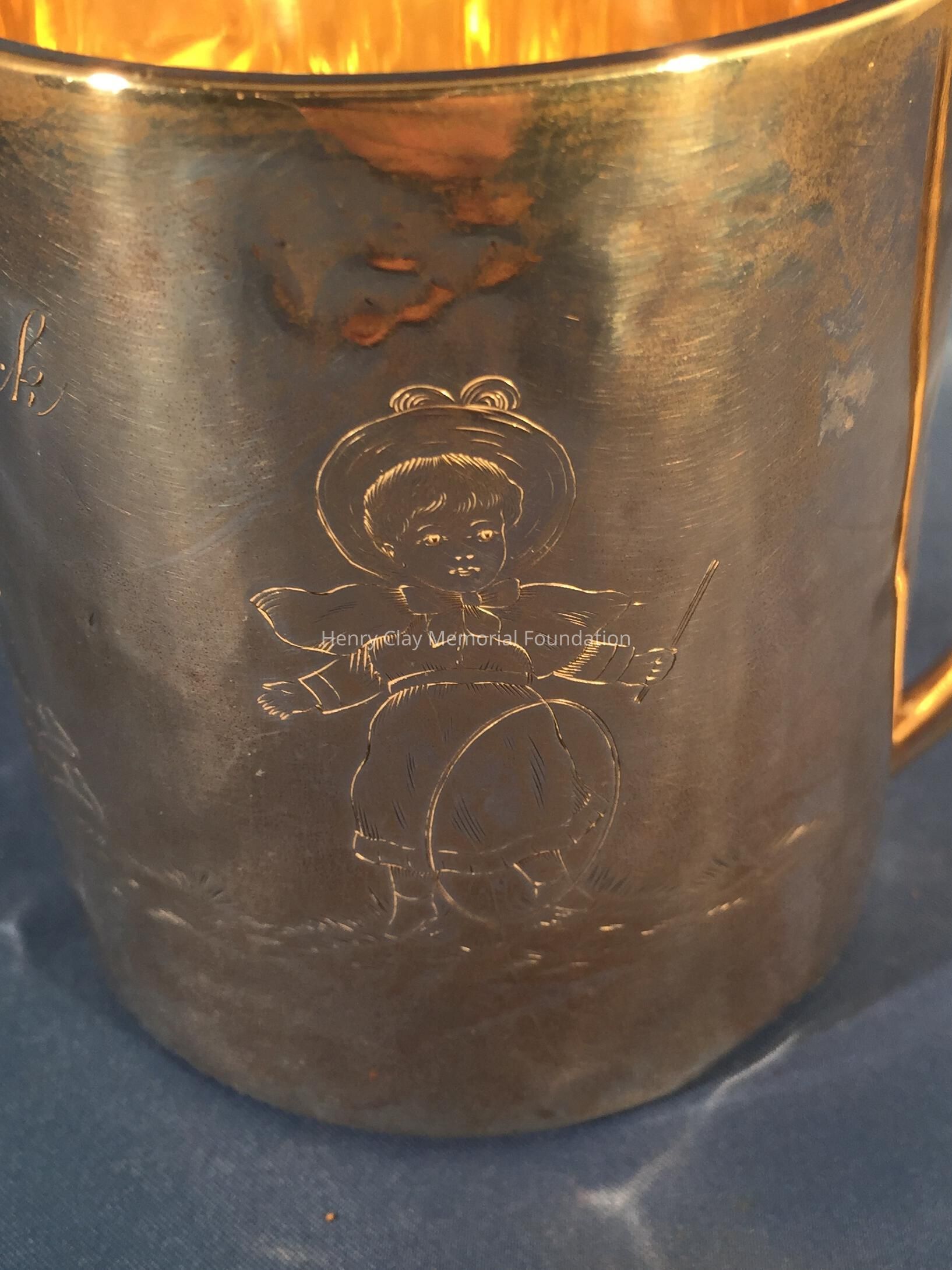 Child's mug; engraved "Henry McDowell Bullock / Nov 27th 1893." Depicts children playing harps. Stamped "Sterling / 333" on bottom.Dimensions