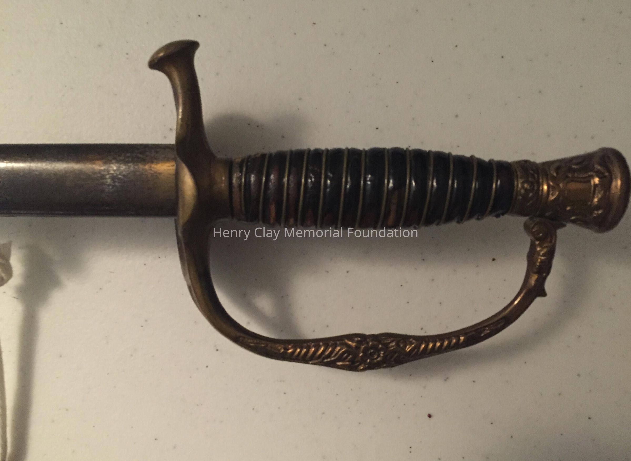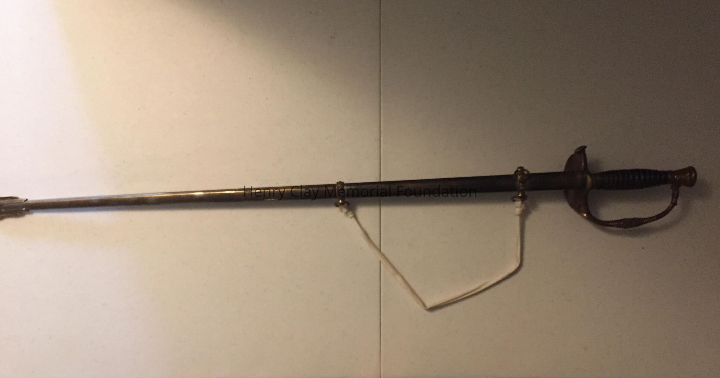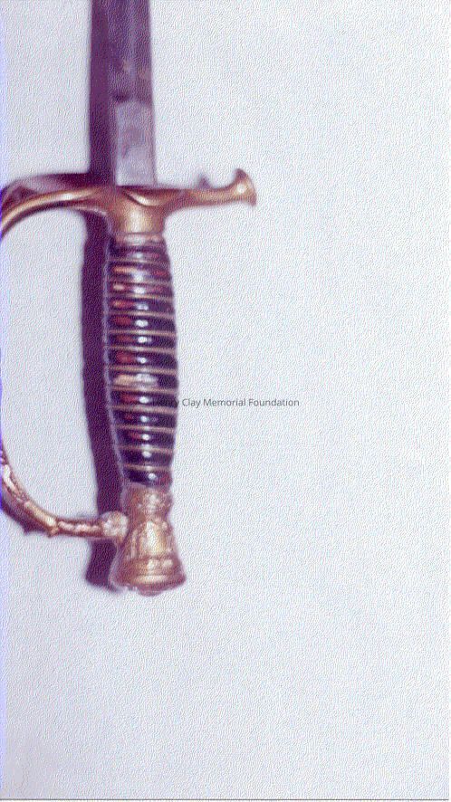 Thin straight blade etched with designs. Bronze hilt has eagle on the guard. Leather handle wrapped with wire. Nickel-plated scabbard has bronze bands with loops, a bronze tip and is inscribed on one side, "R.D. Williams / Adjutant 2nd Reg." Plate on scabbard is badly worn to reveal base metal beneath.Dimensions