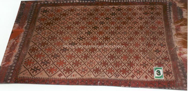 Border of maroon with interior buff colored background. Criss-cross design. Semi-antique. Made in Balouchi, Iran.