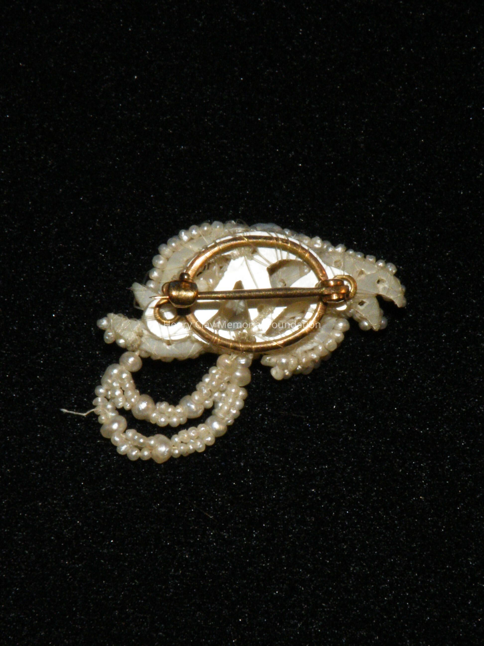 Persian seed pearl jewelry set including a large brooch, small pendant, 2 earrings (one clasp missing), a necklace, and a tiara. The tiara is fashioned with a 14k gold border on an 18k yellow gold background mounted on scalloped-edge sterling silver base. Other pieces are strings of pearls in clusters with tassels of pearls. Contained in Walnut glass case donated by Dr. ScrivnerDimensions