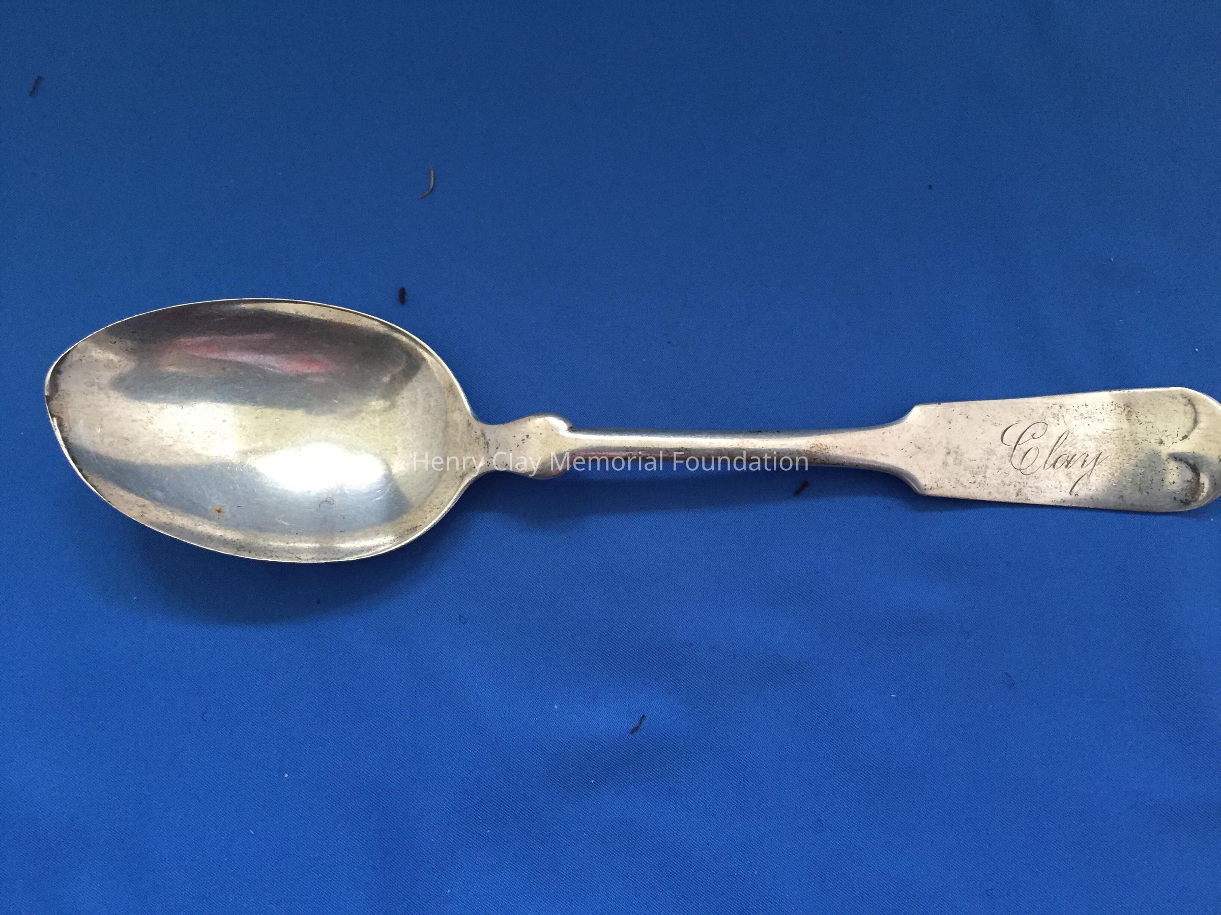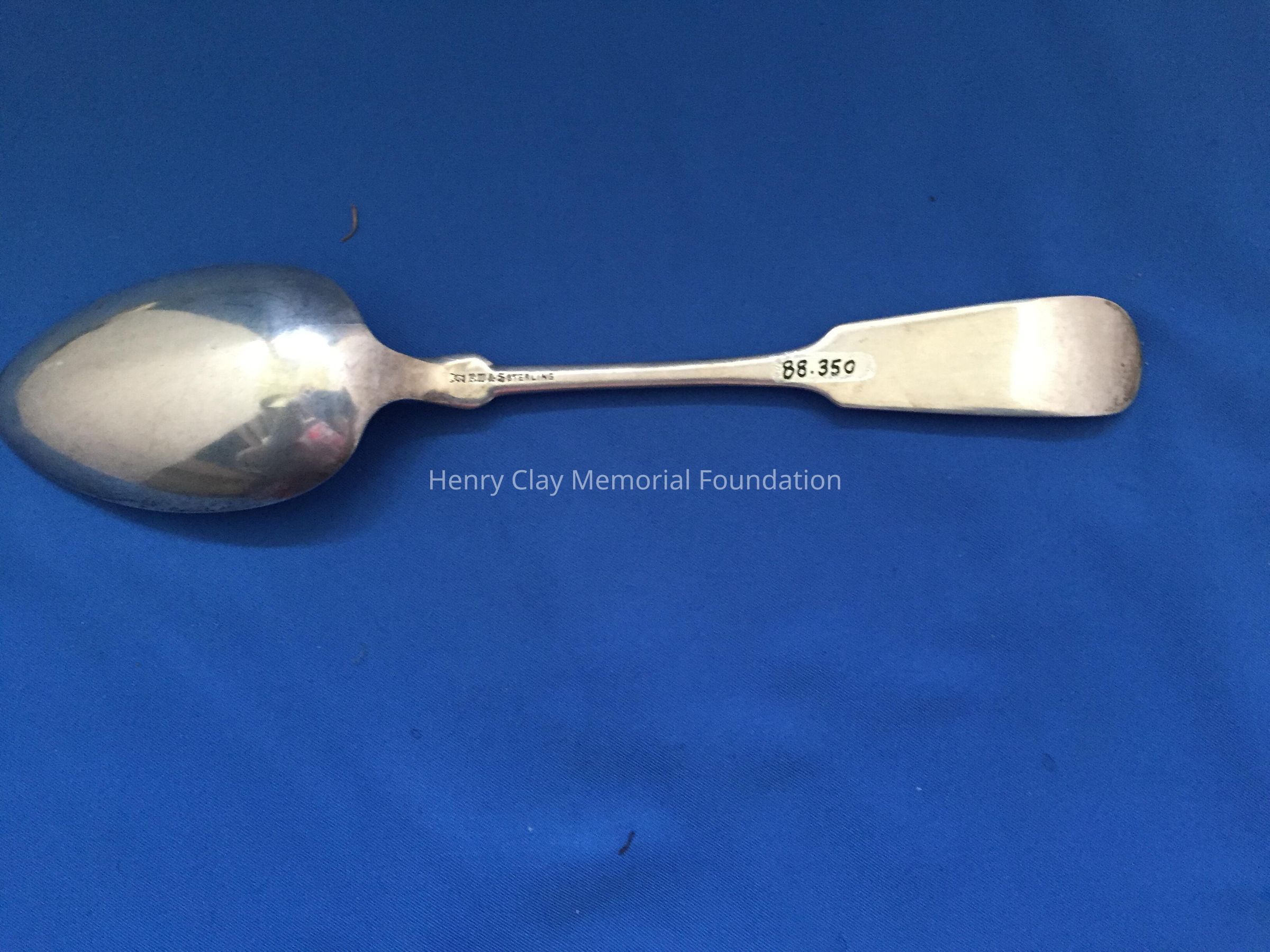 Sterling spoon with "Clay" engraved on top front. Back has hallmark of Stag's head beside " RW & S".