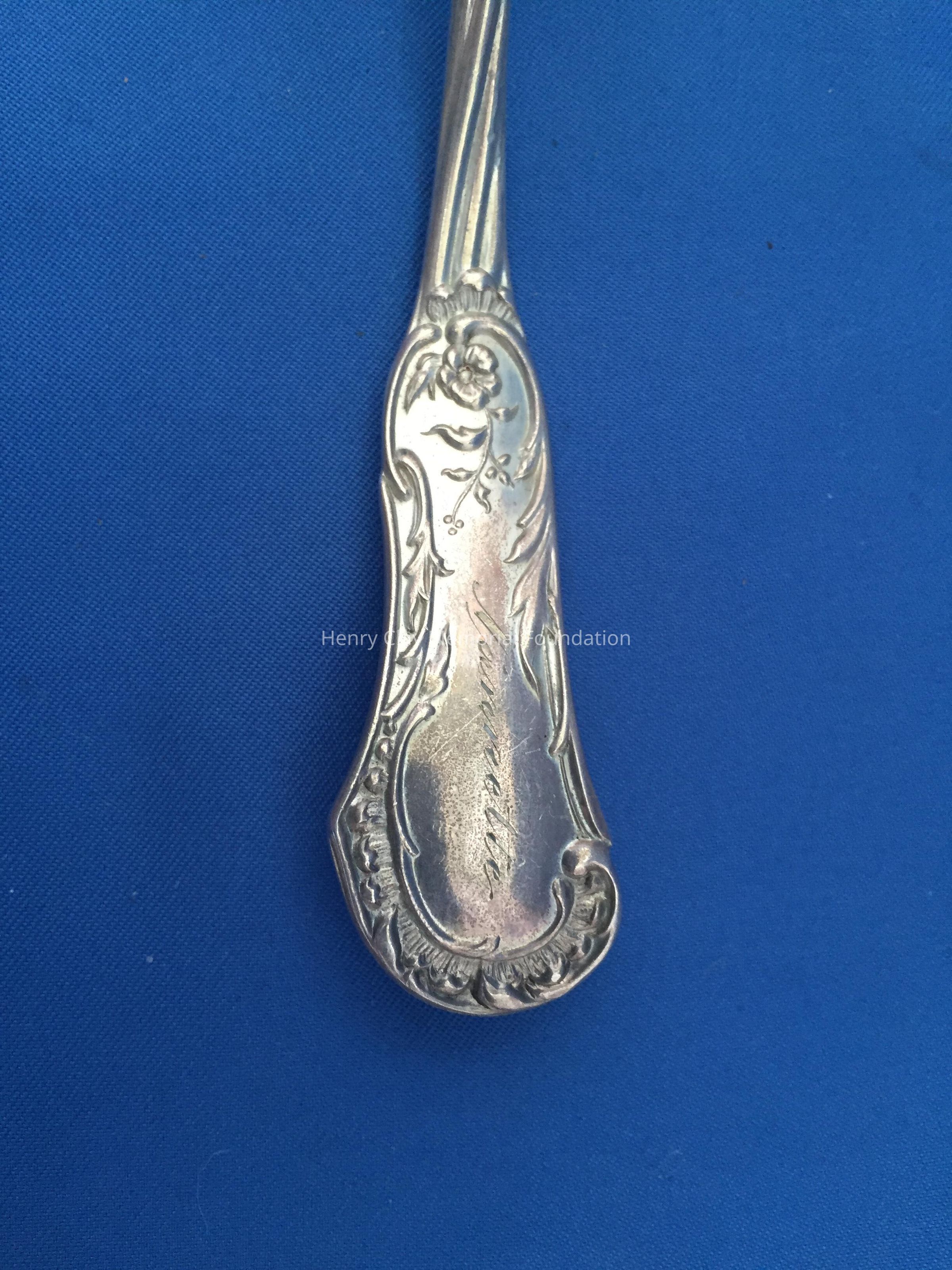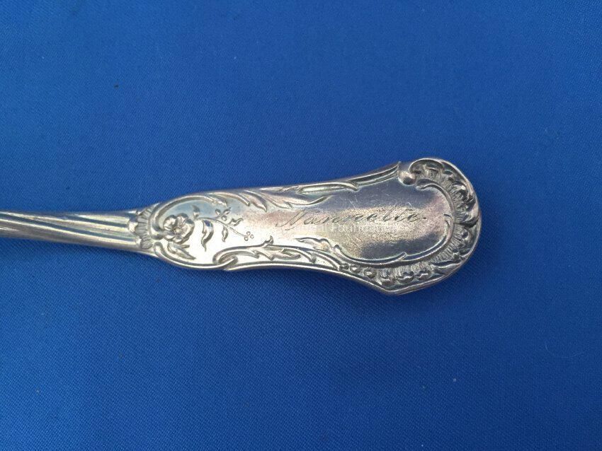 Sterling small gravy, sugar, or cream ladle. "Nannette" on back , "1892" on front, Frederick L. Smith, Manufacturer. Round bowl.
