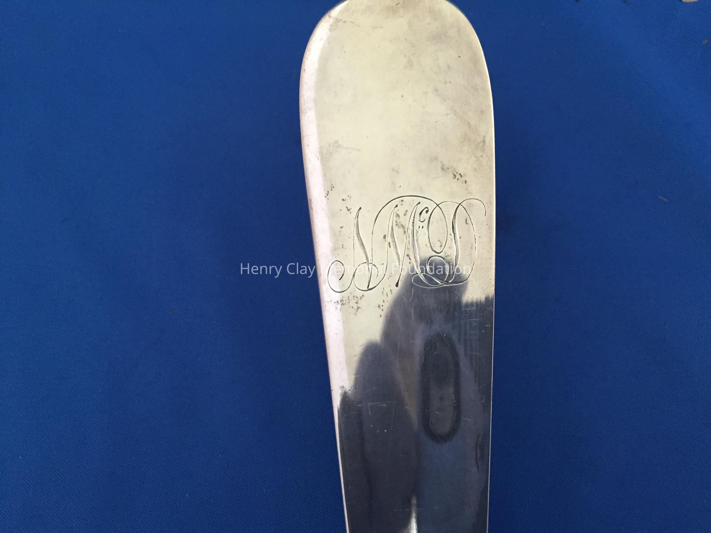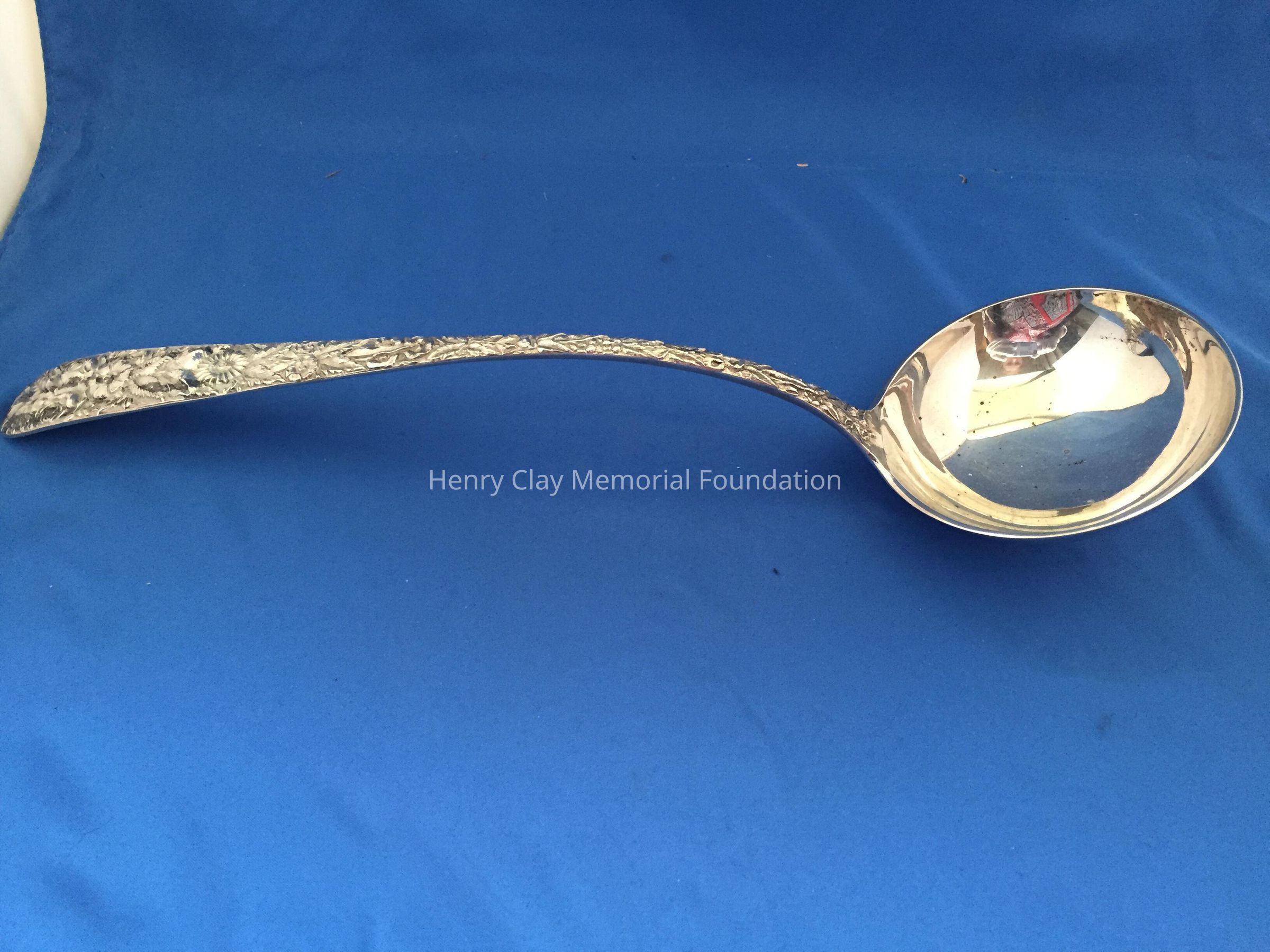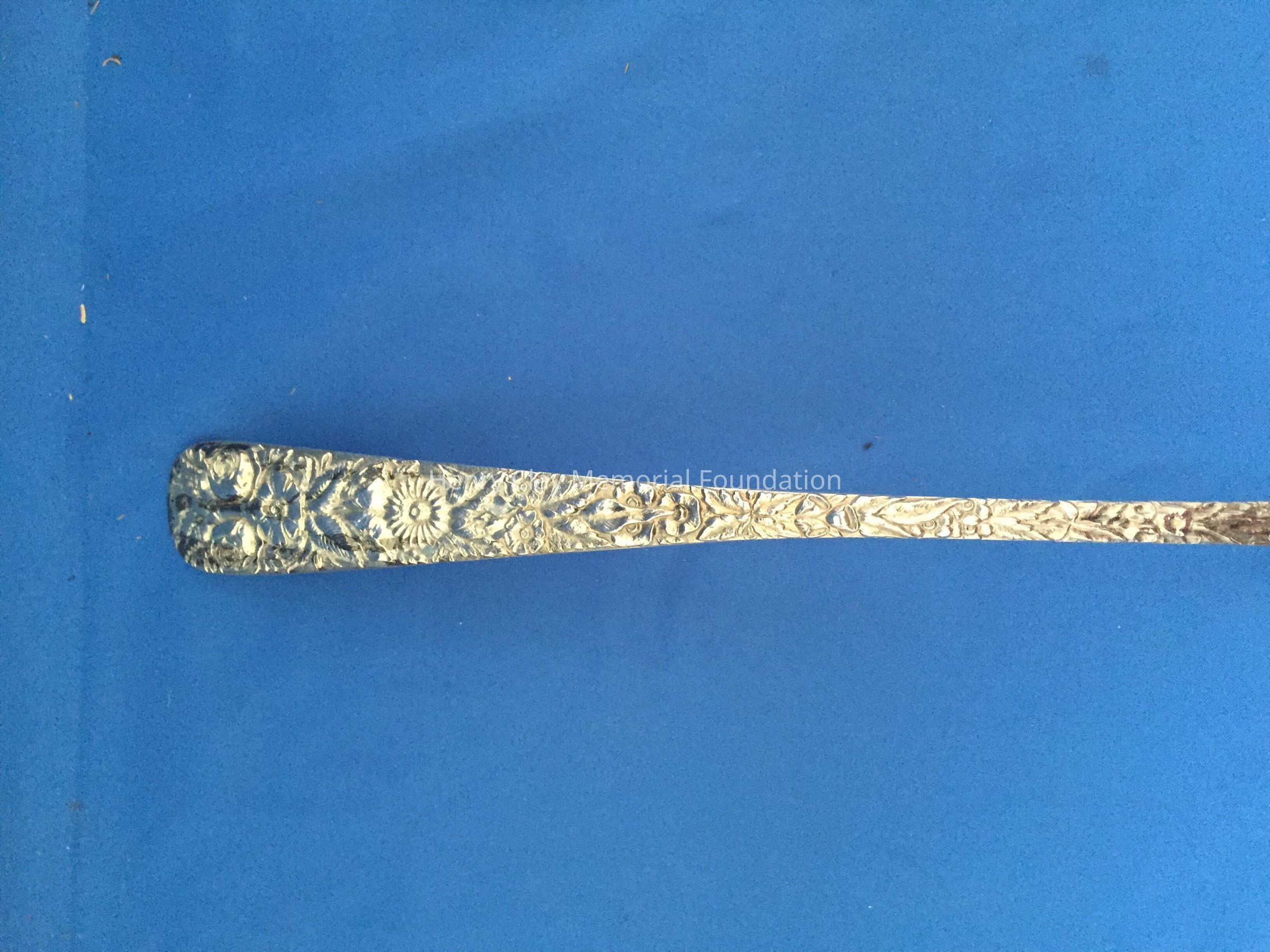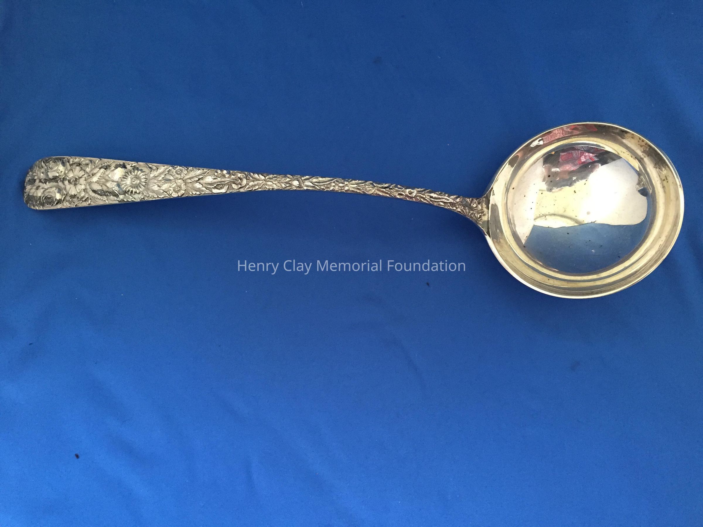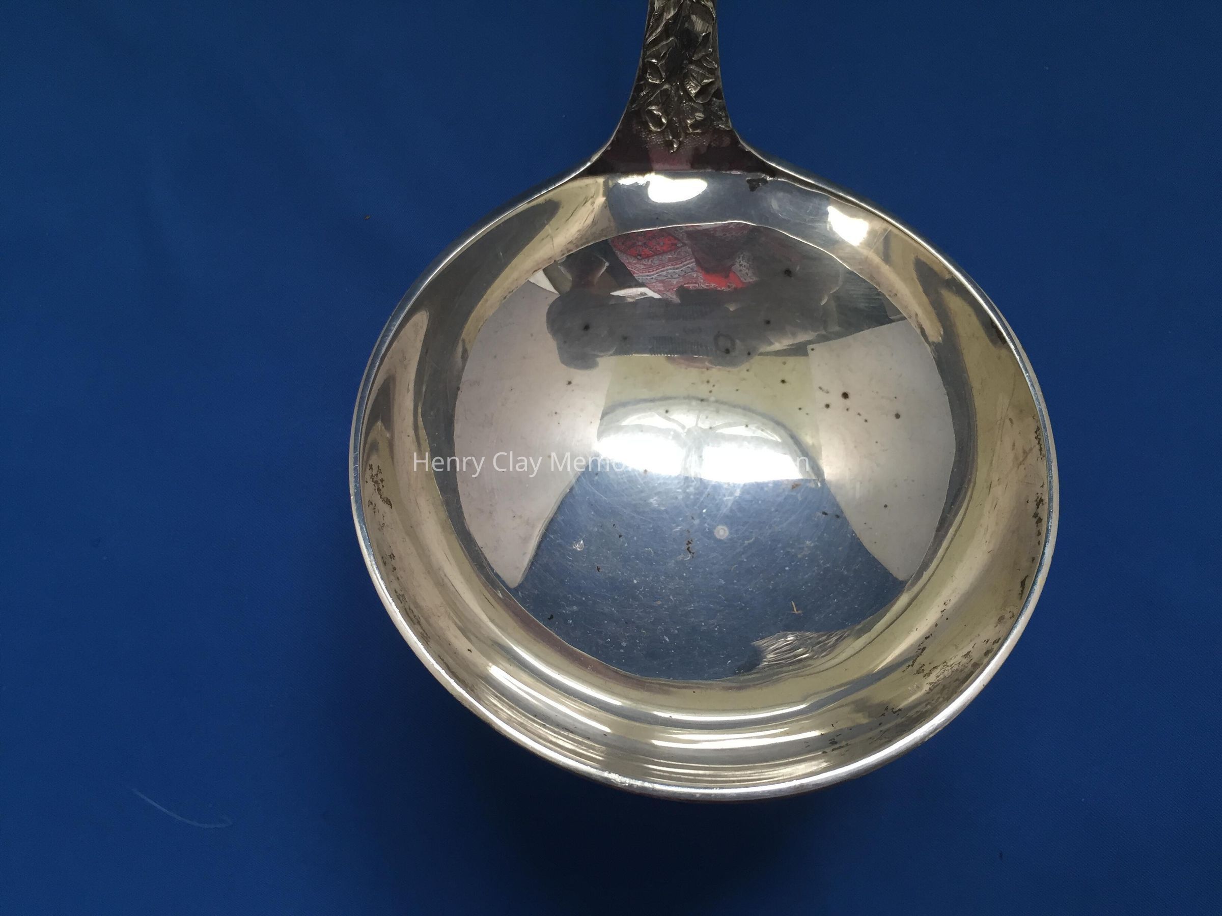 Sterling ladle with highly decorative handle, stamped on the back "S. Kirk & Son". Engraved on back of handle, "NMcD".