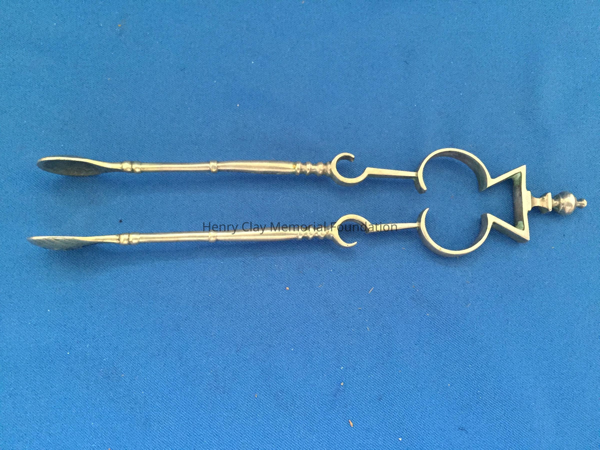 Round, gold-wash pincers. Slender arms with a center knob at top.