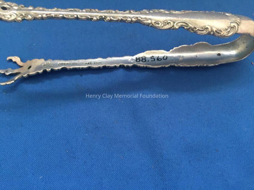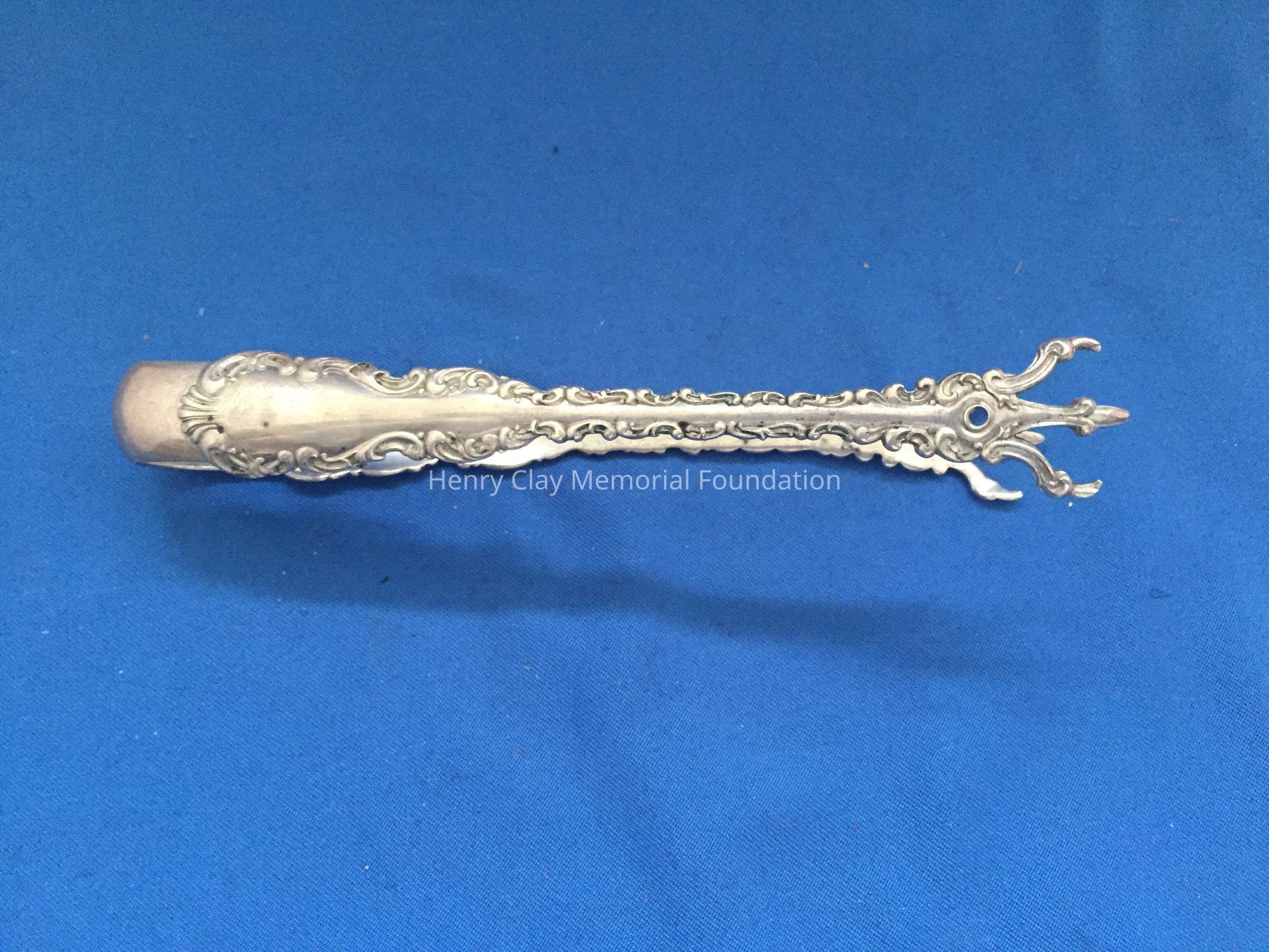Sterling with bird claw pincers, Louis IV style. Stamped "Pat 1891". Small hole above each pincer.
