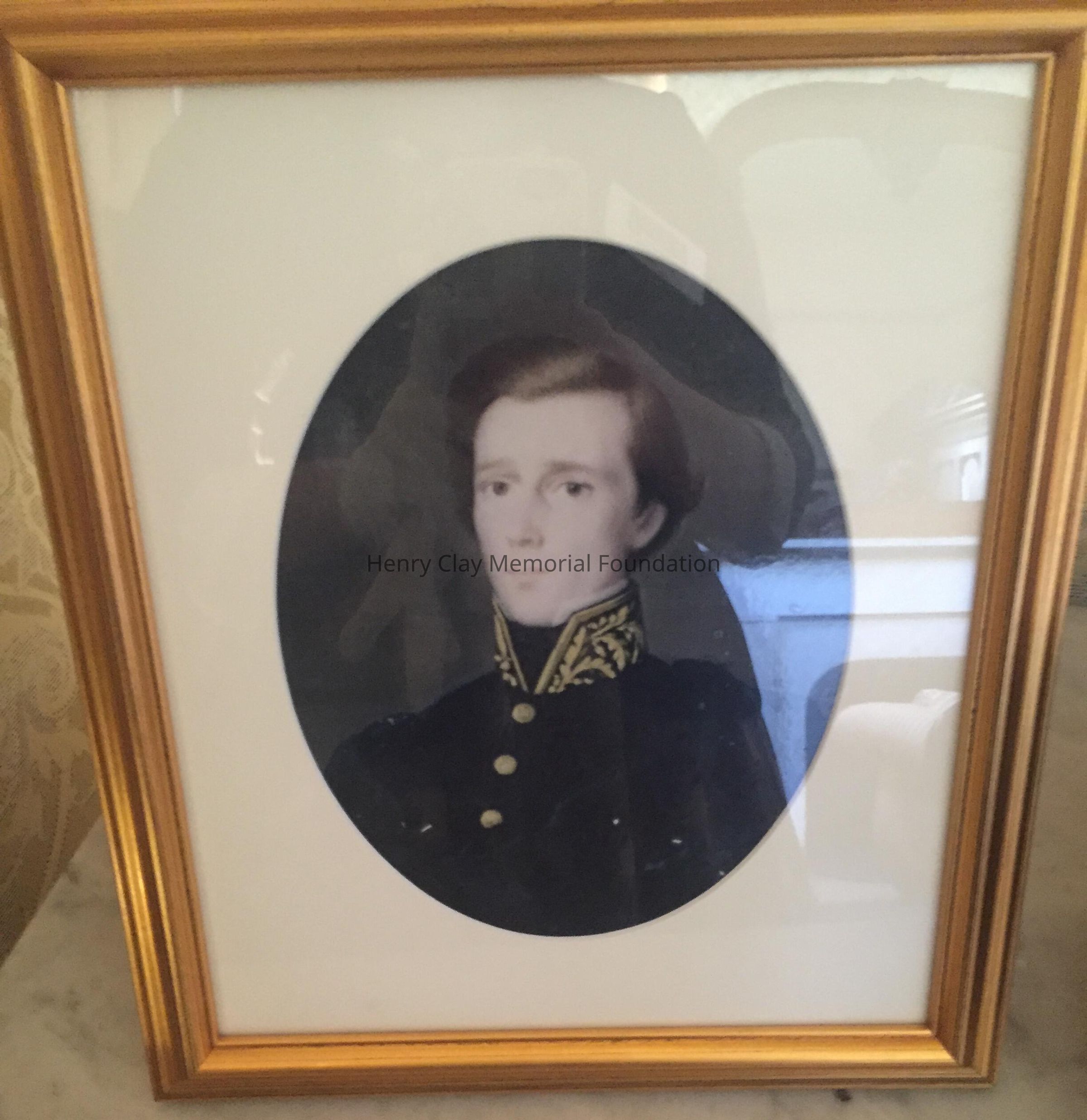 Color photographs taken of miniatures of James B. Clay and his wife Susan (Jacob) Clay. Framed in modern gold frame for display.