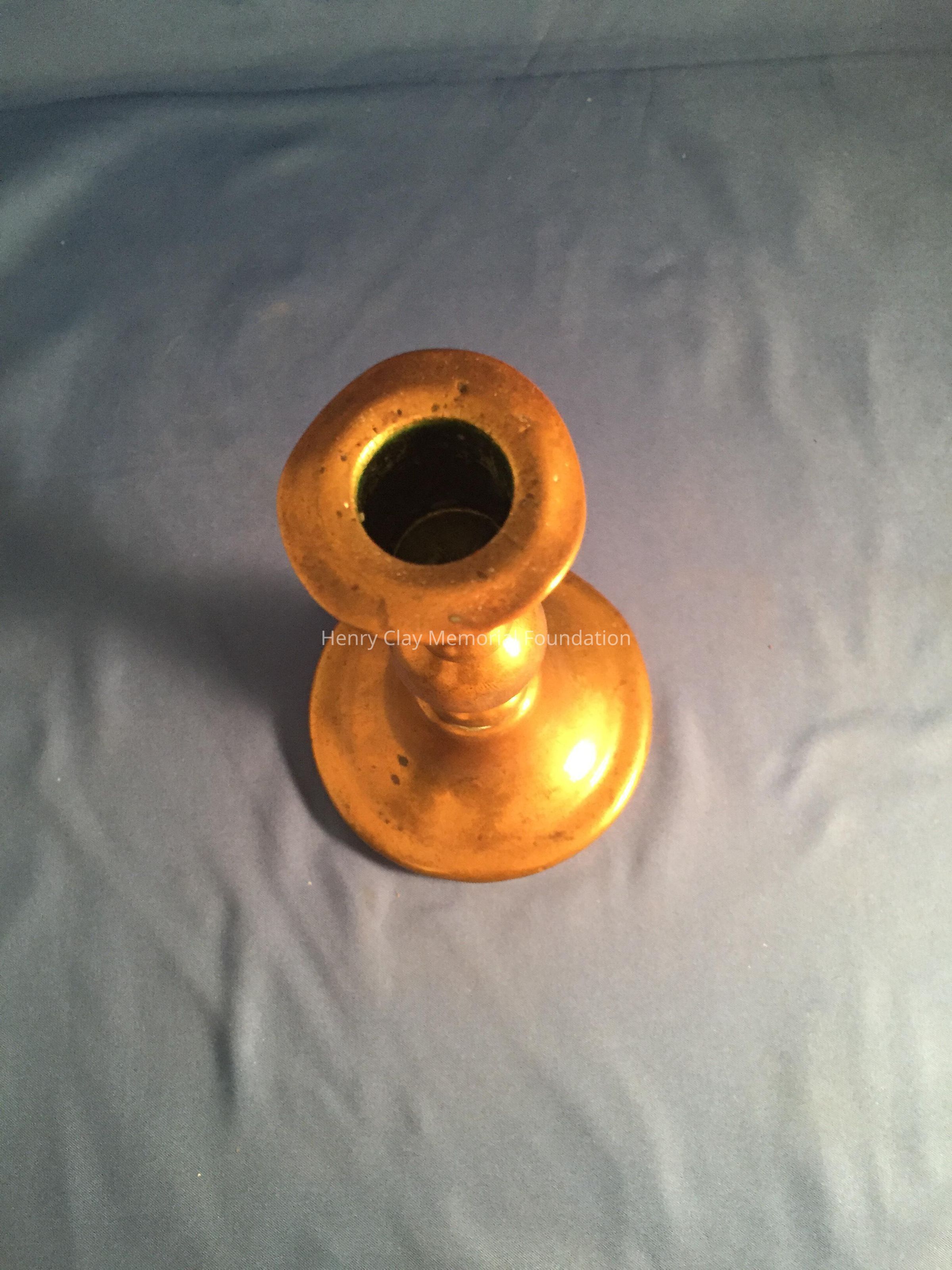 Brass Candlestick. Tape on bottom reads "Henry's" and refers to Henry Bullock.