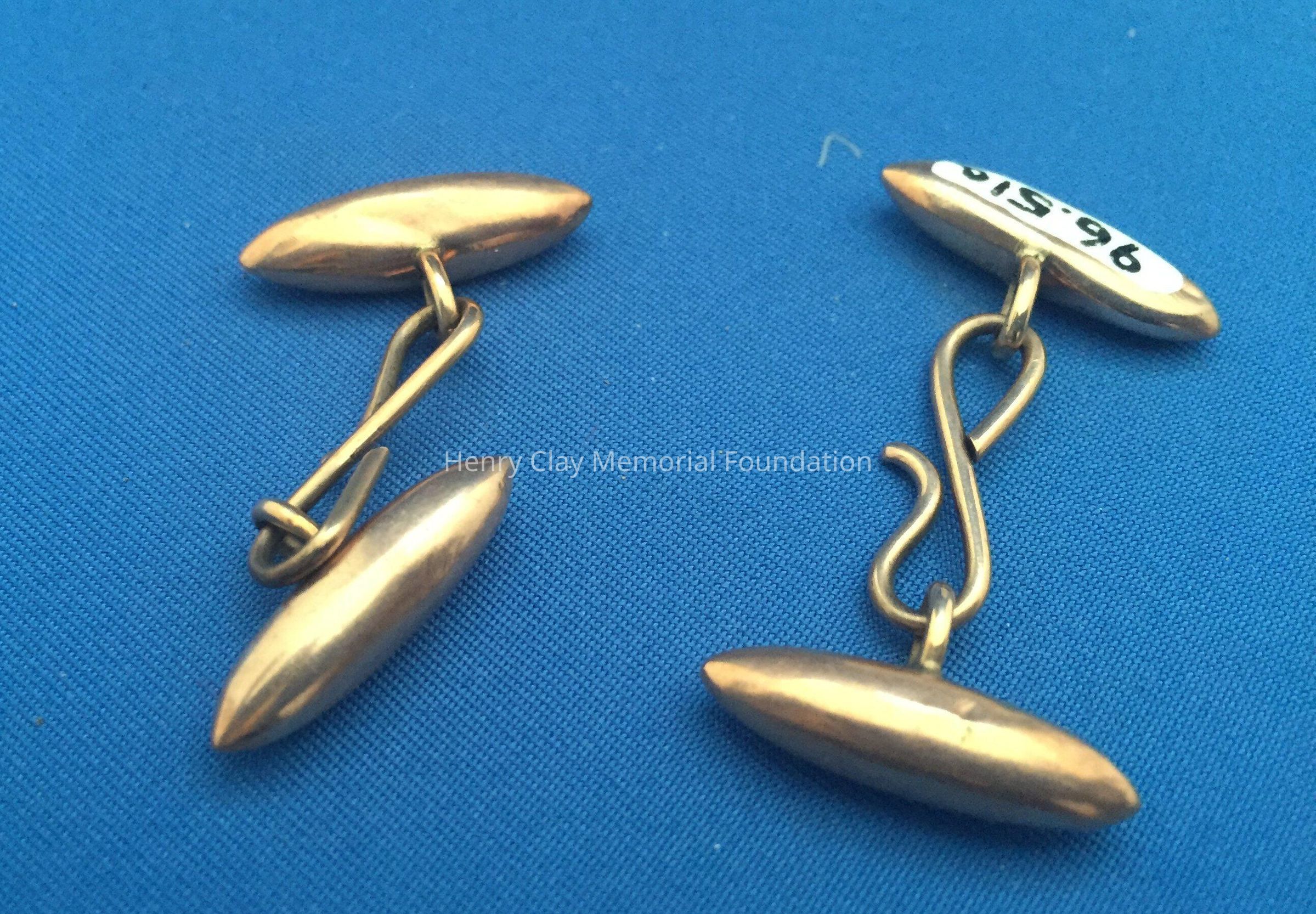 Rose gold torpedo-shape cuff links.