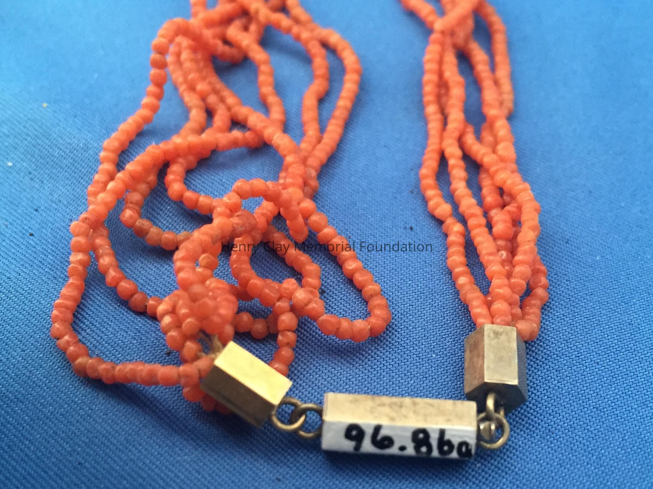 Two multi-strand coral bead bracelets with matching necklace. Each has a brass or gold clasp.