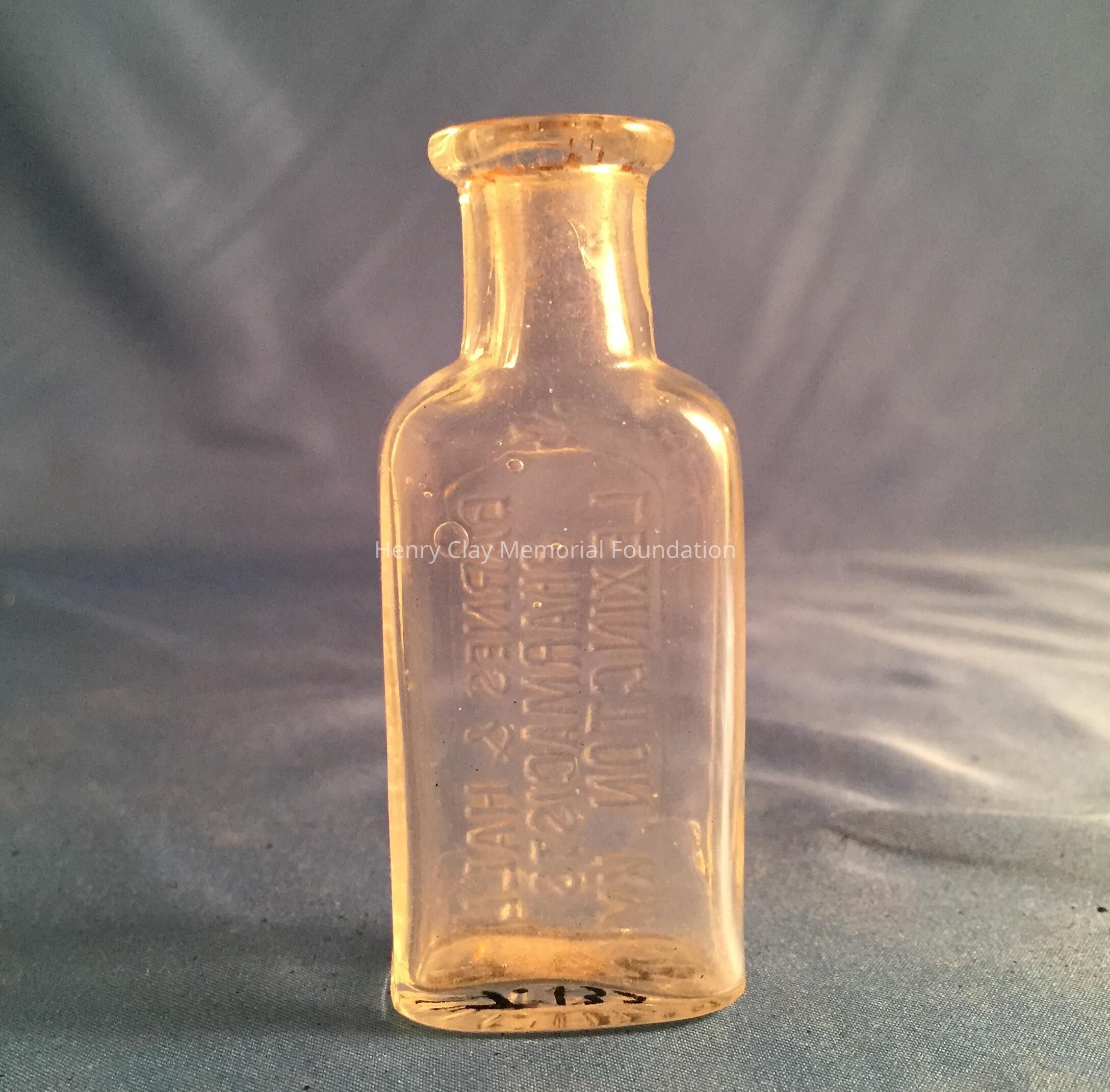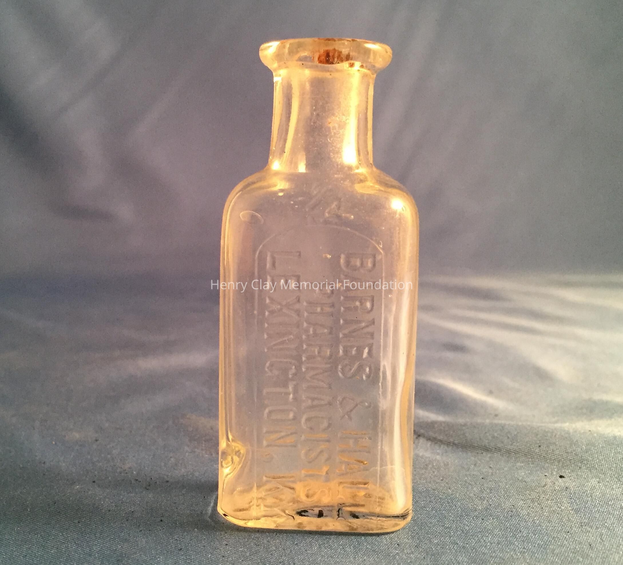 A) Small rectangular shaped bottle, stamped in glass "Barnes & Hall / Pharmacists / Lexington, KY."