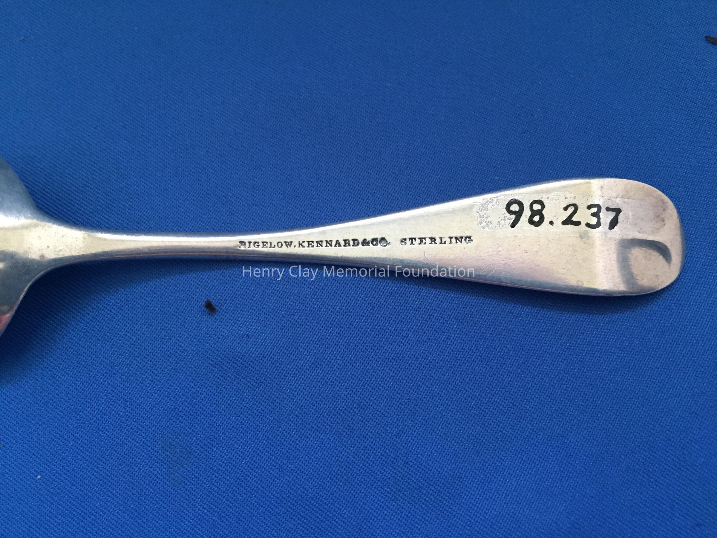 Sterling with deep bowl. Engraved "C" at top front of handle. Stamped "Bigelow, Kennard & Co." on back.